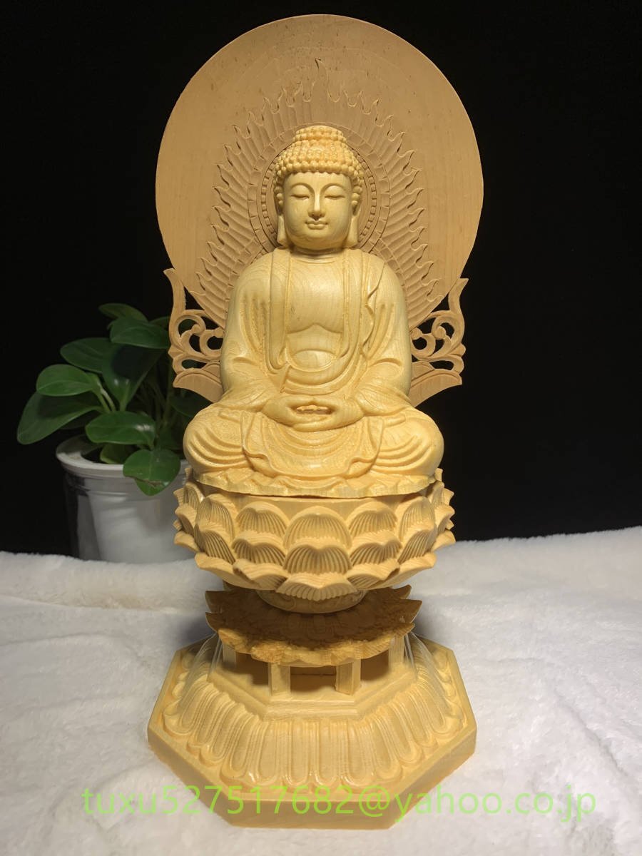 新作 総檜材 釈迦如来 置物 仏教工芸品 木彫仏教 精密彫刻 極上品 仏像座像