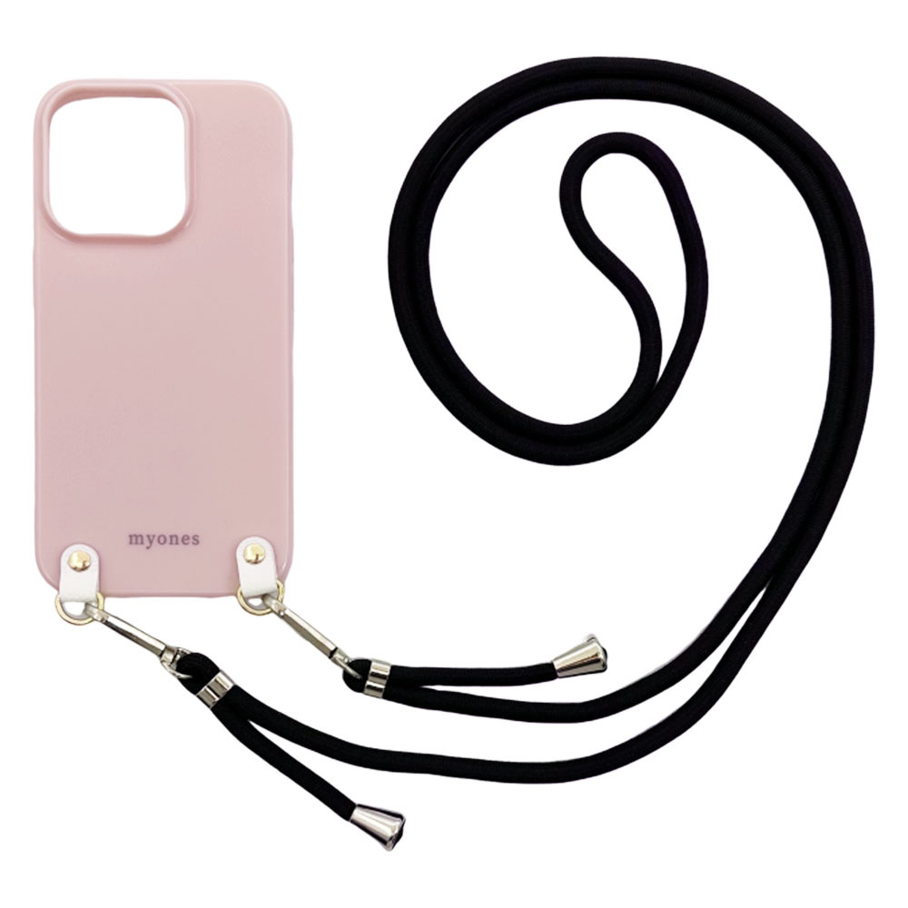 AQUOS sense7 plus(くすみピンク/ブラック)ひも TPU ストラップ 肩掛け 首かけ 斜めが スマホケース かわいい