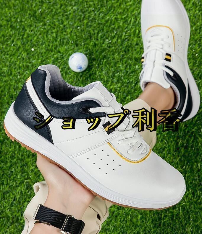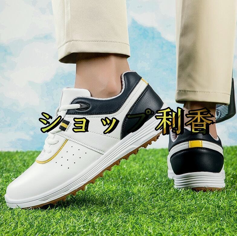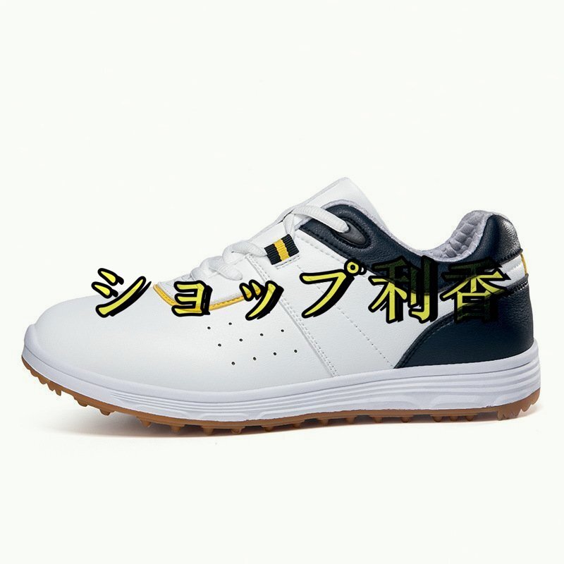 ゴルフシューズ 新品 スポーツシューズ 運動靴メンズ グラデーション 幅広 紳士スニーカー フィット感 防滑 耐磨撥水 白*黄 24.5cm~28cm
