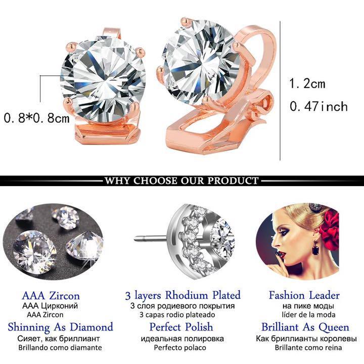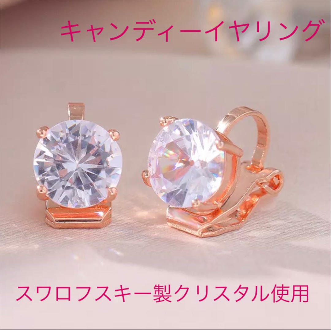 (5030)クリア×ピンクゴールドまん丸イヤリング イヤークリップ 高級爪留め スワロフスキー製クリスタル使用