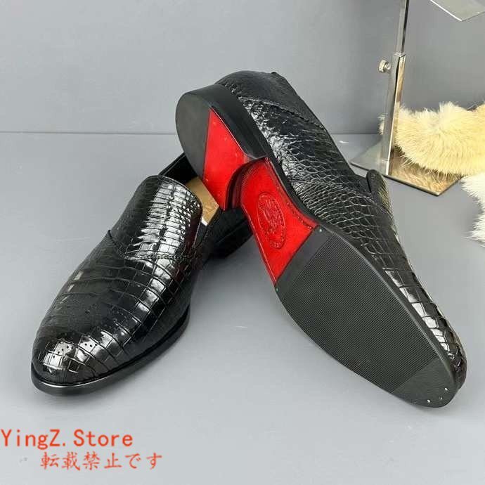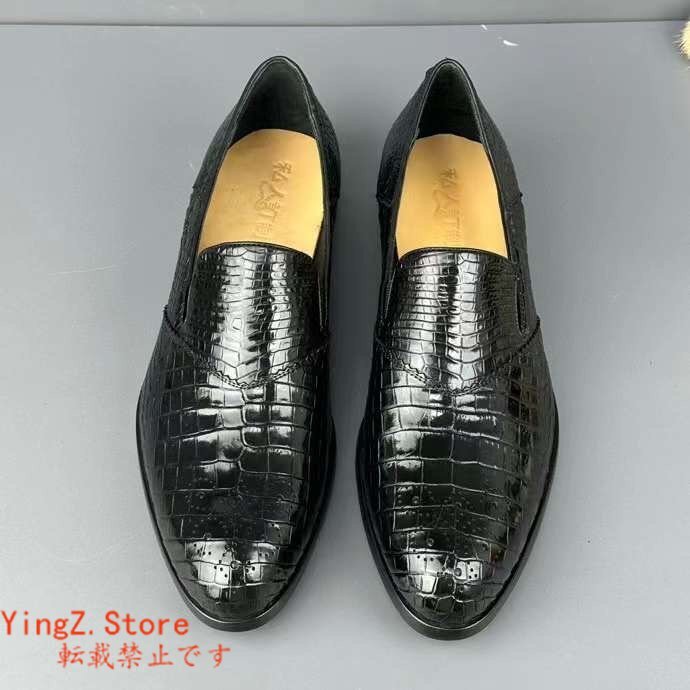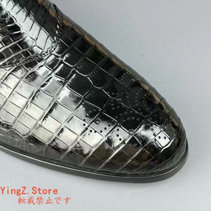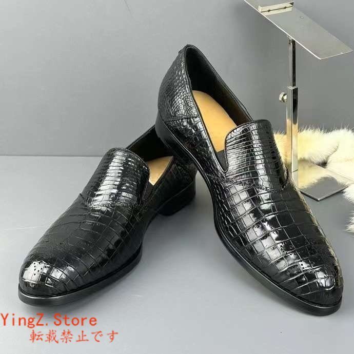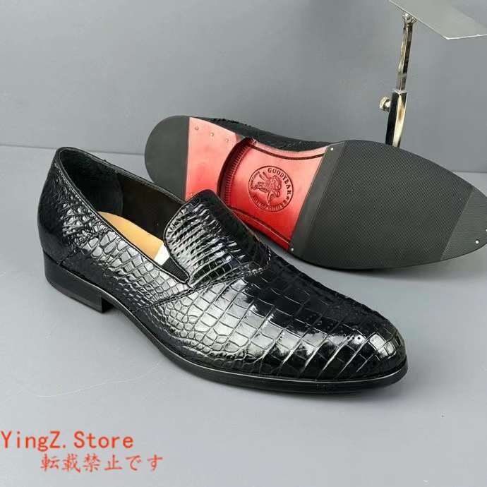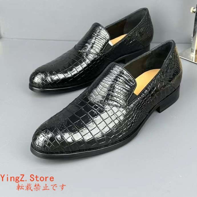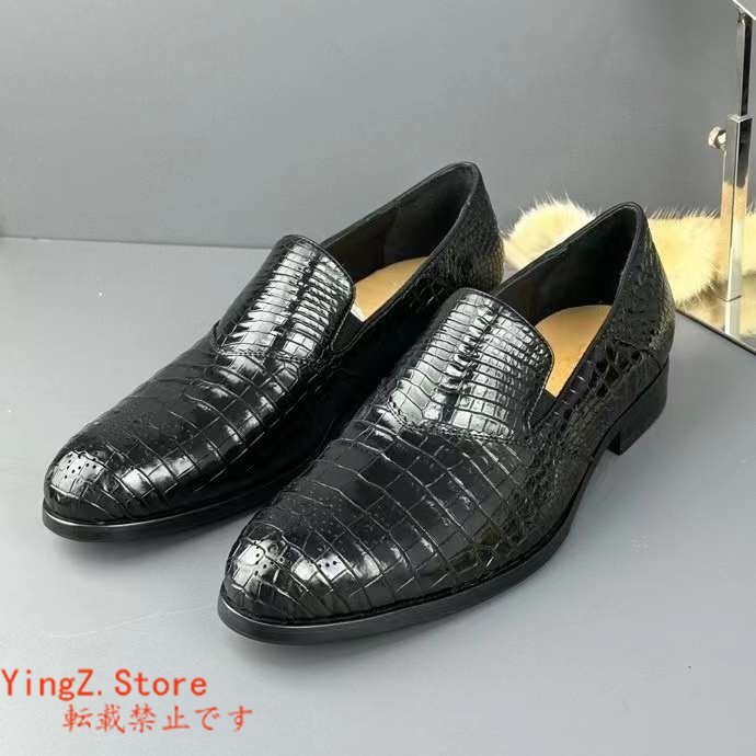 ブローグシューズ サイズ選択可 ワニ革 クロコダイルレザー メンズシューズ 革靴 ビジネスシューズ 通勤 紐なし スリッポン ローファー