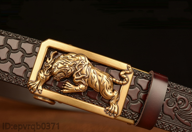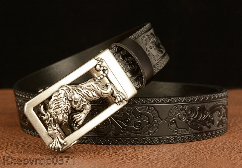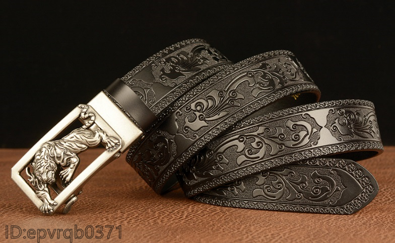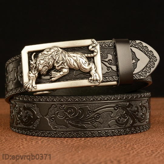 レザーベルト 新品 オートロック式 バックル トラ 本革 メンズ ベル ト 幅3.5センチ 柄物 紳士 長さ調整可能 2色選ぶ/シルバー黒