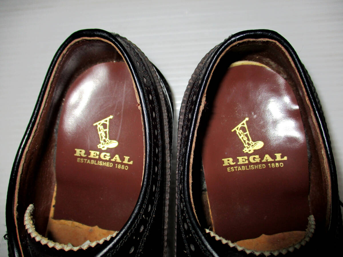 リーガル REGAL ウィングチップ レザーシューズ 革靴 ダークブラウン 24EE です。正規品です。素材は本革です。色はダークブラウン系です。 色は画像でご判断ください。(画像8)※譲って頂いたものですのではっきりわかりませんがインソールのブランドのロゴの下部分に中敷きを入れて厚底のしていると思います。現状の状態での出品ですのでその点ご理解のある方の入札よろしくお願いします。