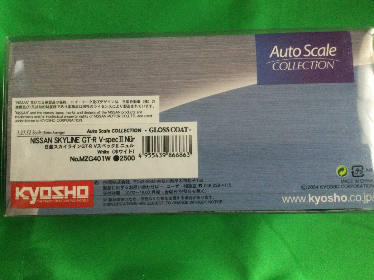KYOSHO MINI-Z Auto Scale COLLECTION NISSAN SKYLINE GT-R V-specⅡ Nur White 新品