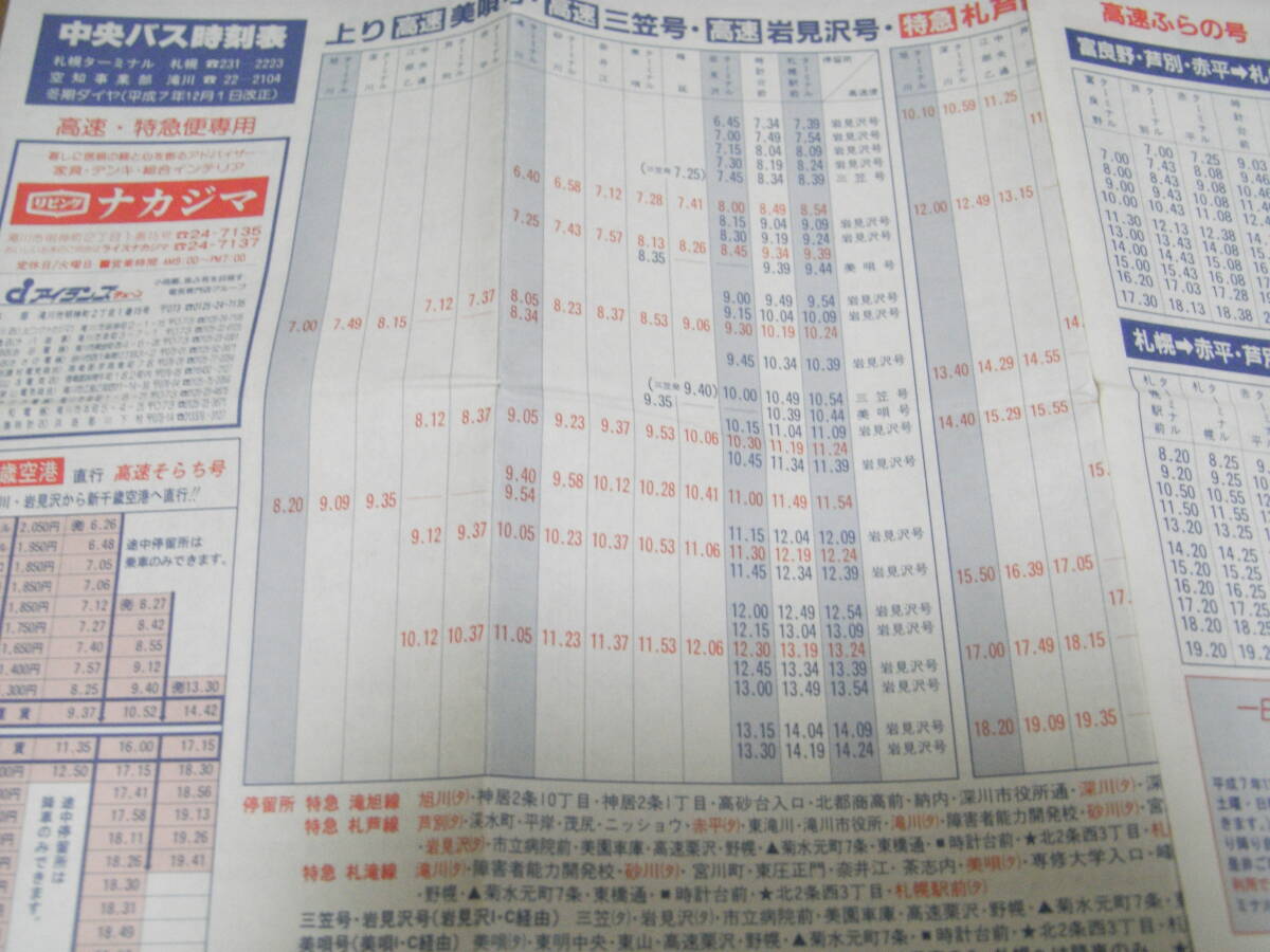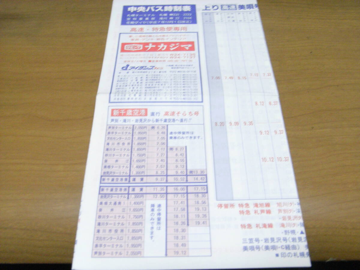 中央バス時刻表 高速・特急便専用 冬期ダイヤ(平成7年12月1日改正)