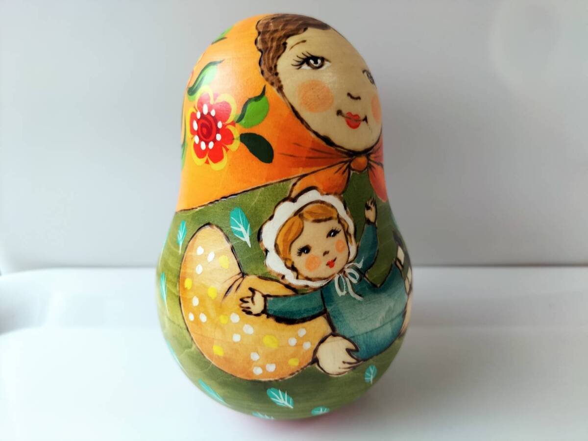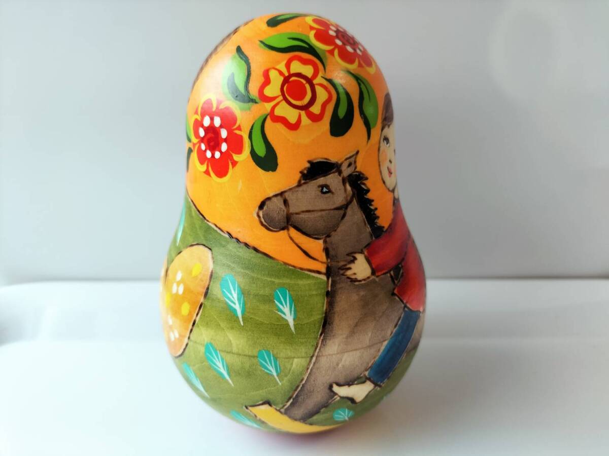 【MZ046】北欧ロシア雑貨、アルハンゲリスク伝統工芸品「メゼーニ塗り」起き上がりこぼし
