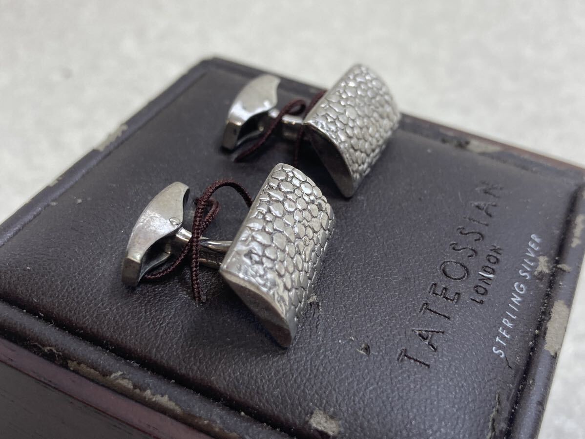 新品 タテオシアン(英) カフリンクス スターリングシルバー 粒加工長方形型 希少デッドストック 現在定価7~8万円ほど