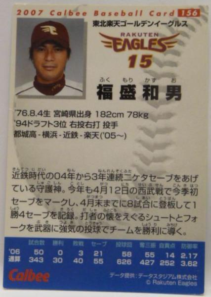 カルビープロ野球カード2007年#156【福盛 和男(東北 楽天ゴールデン イーグルス)】平成19年チップスおまけ食玩トレーディングカード 中古