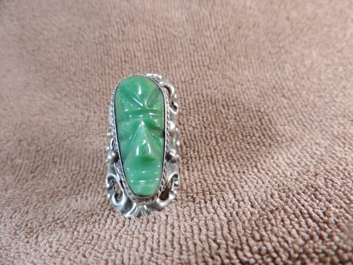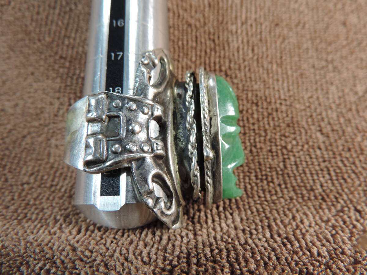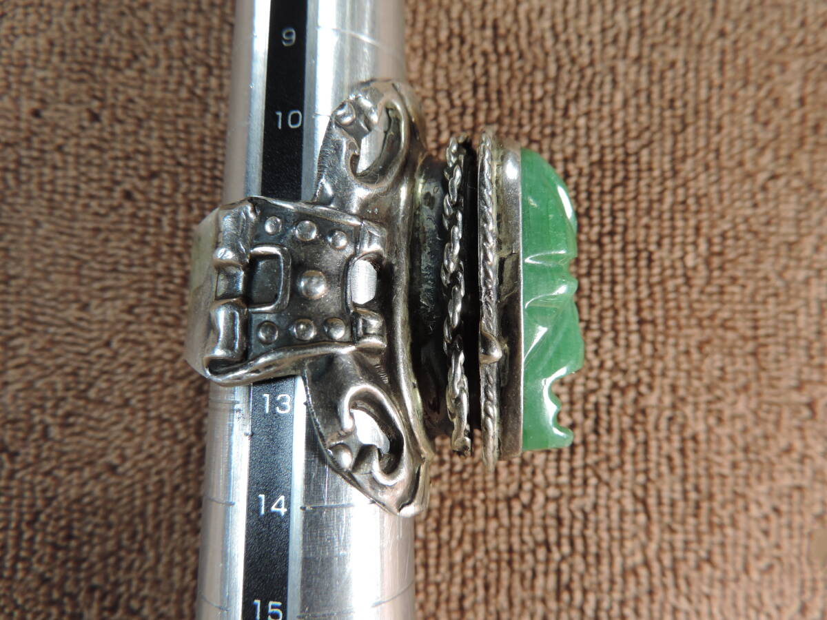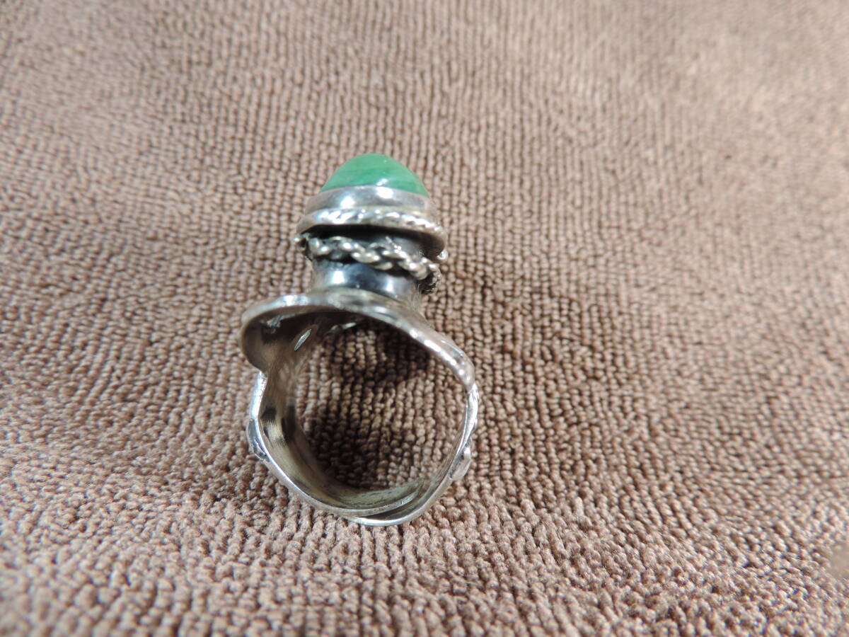 【質問欄より値下げ交渉可】ヴィンテージレディース指輪 925 MEXICO STERLING刻印あり・緑宝石付き(9x25ミリ)・美品・13号~20号・約13.50g