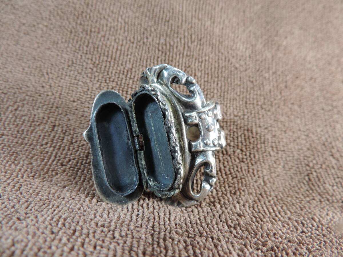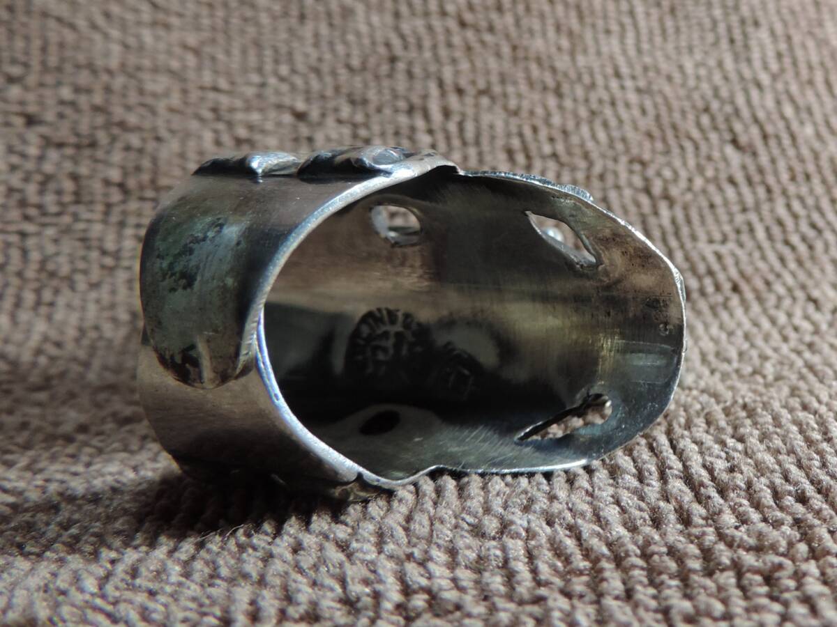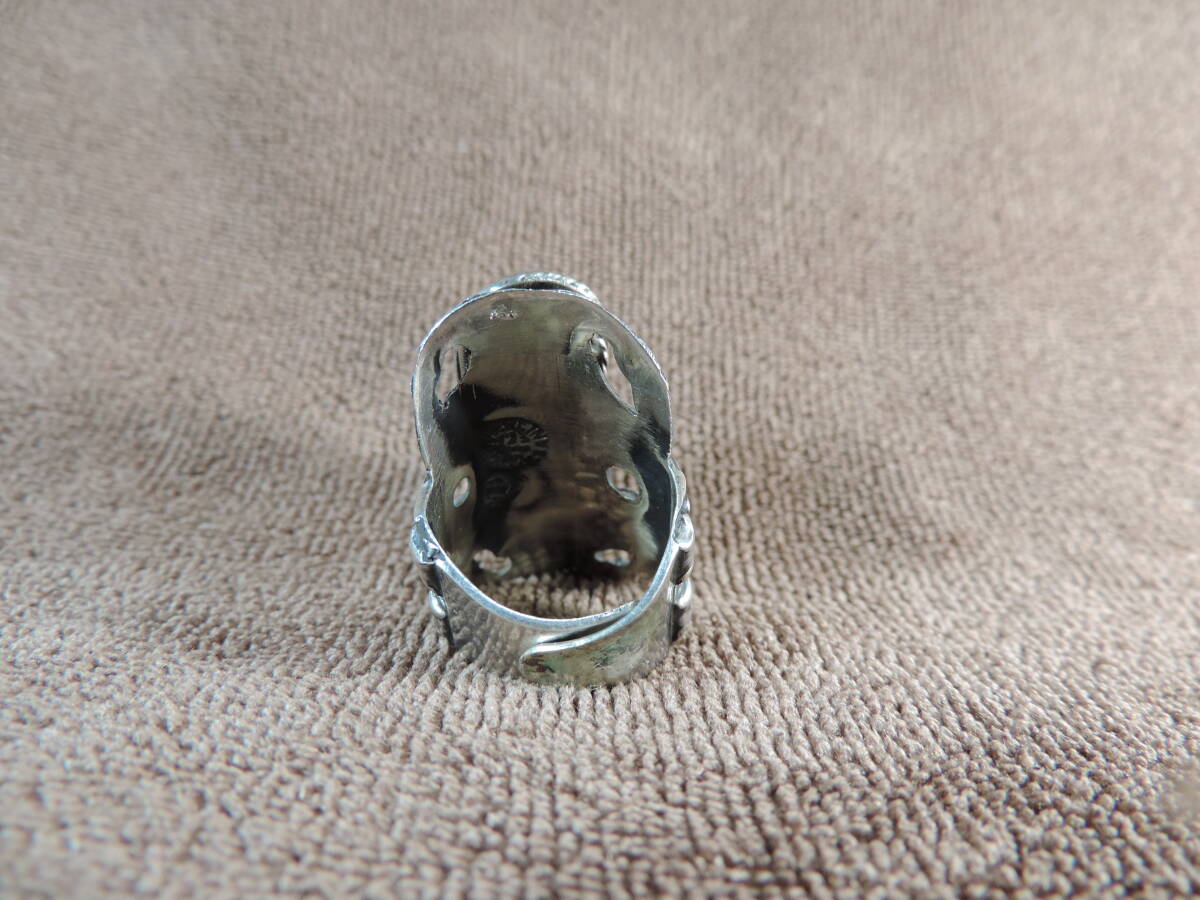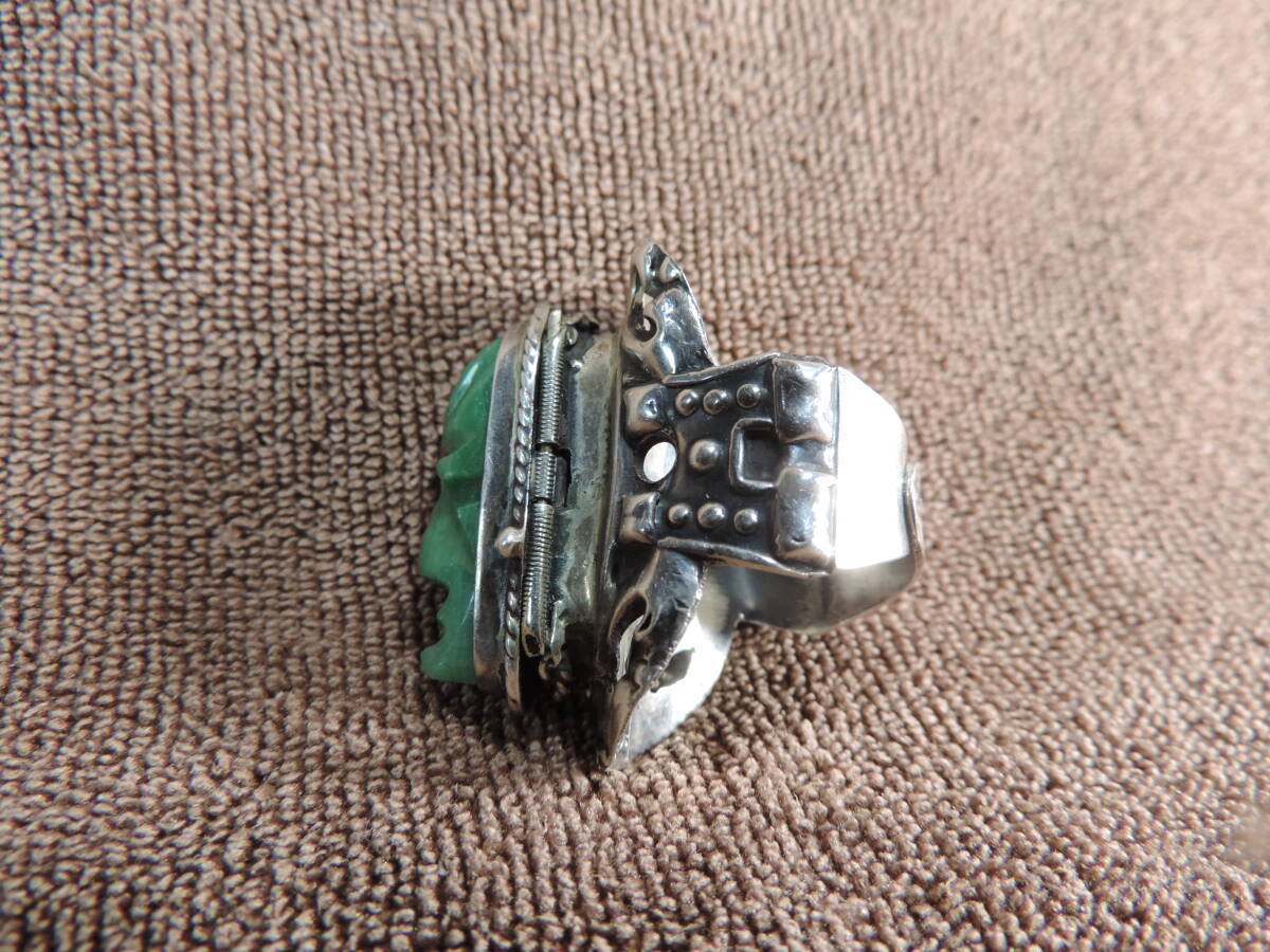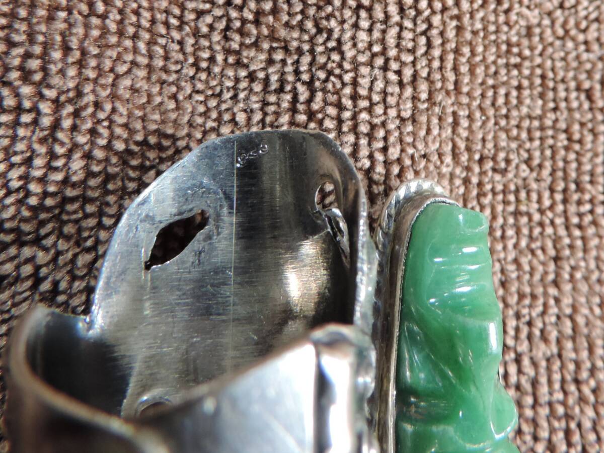 【質問欄より値下げ交渉可】ヴィンテージレディース指輪 925 MEXICO STERLING刻印あり・緑宝石付き(9x25ミリ)・美品・13号~20号・約13.50g