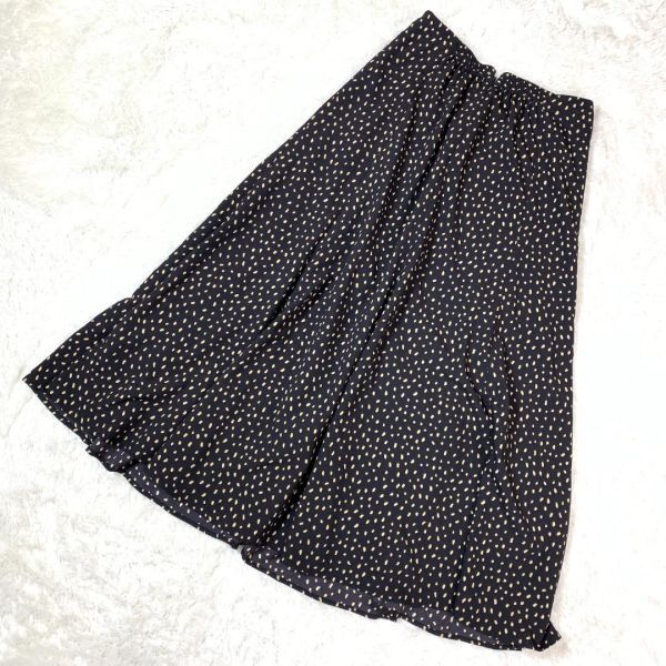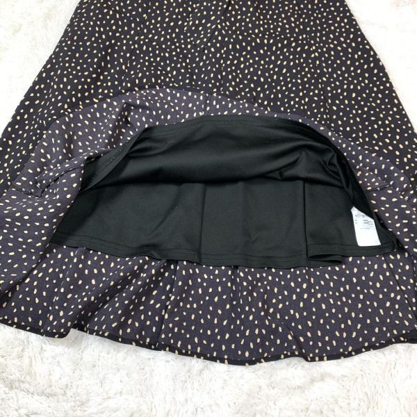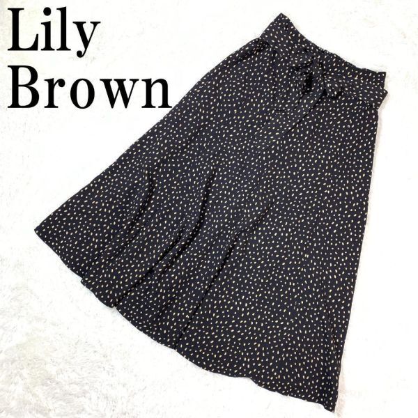 Lily Brown リリーブラウン ロングフレアスカート ロングスカート リボンベルト付き ブラック 黒 総柄 F B5721