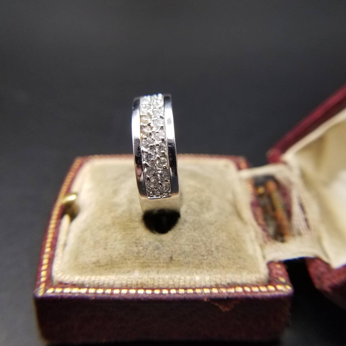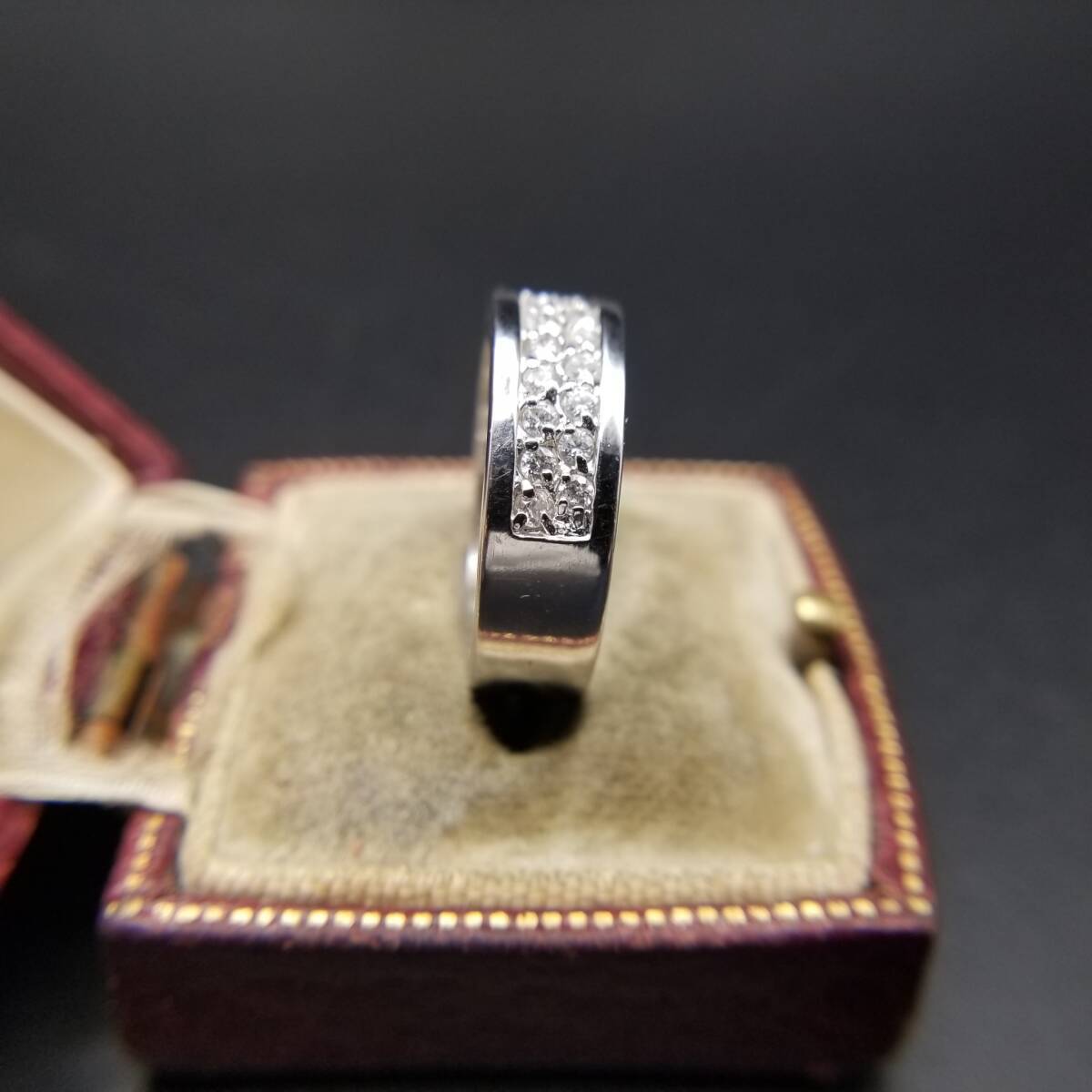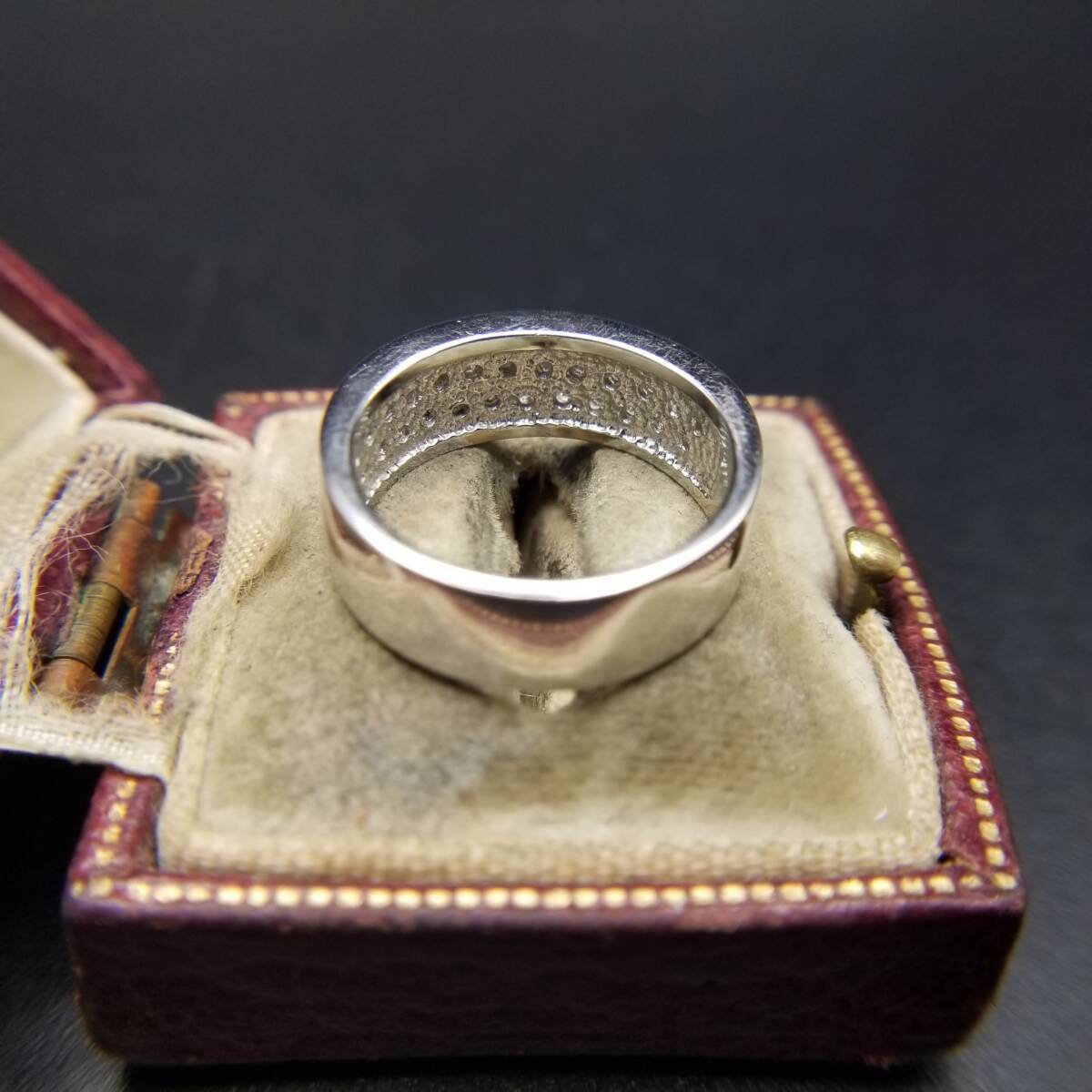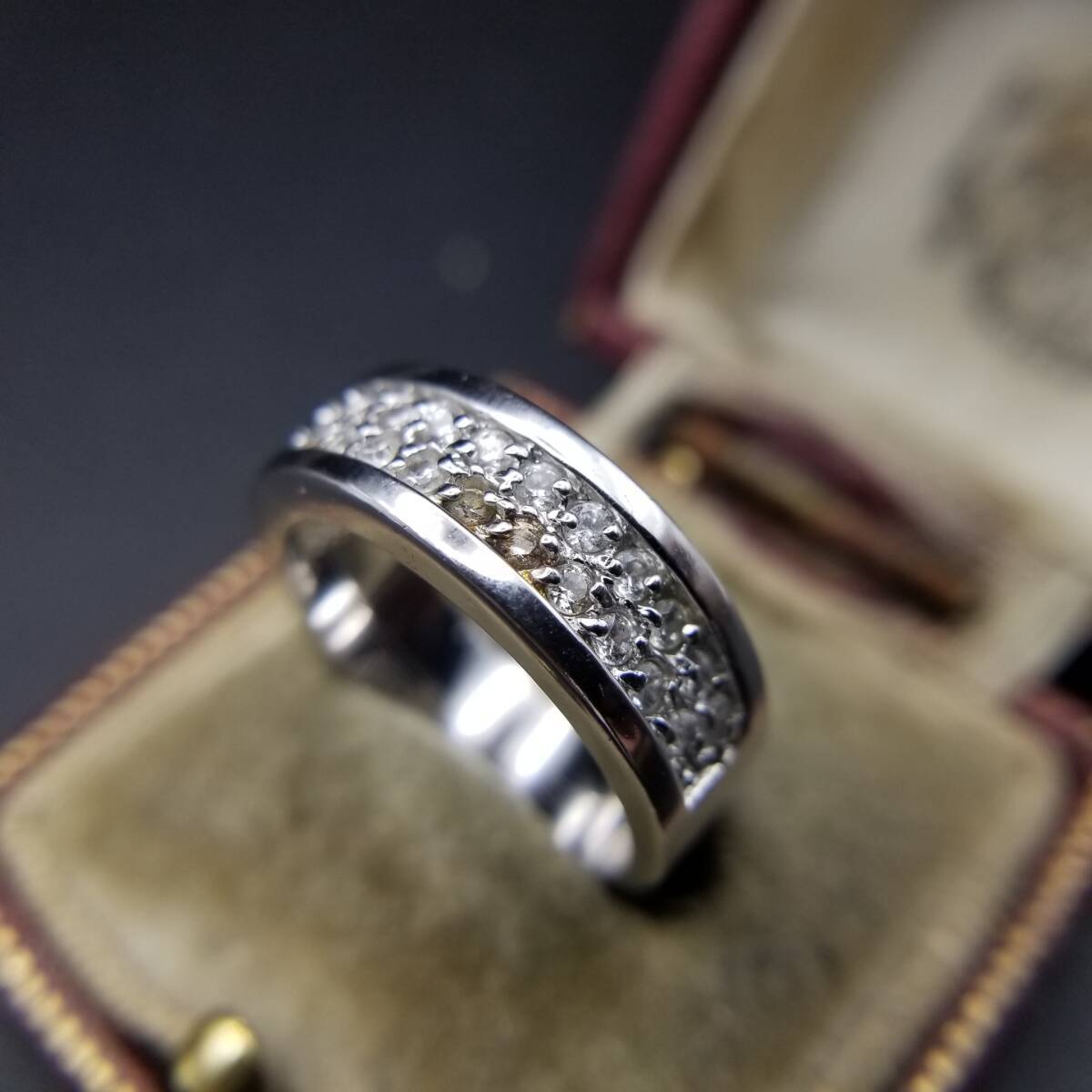 FAS クリア ラウンド ラインストーン ハーフエタニティ バンド 925 ヴィンテージ シルバー リング 指輪 ジュエリー 輸入 Y14-W