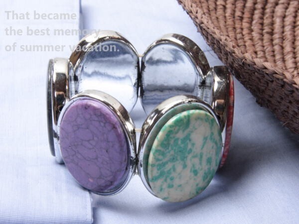 ★ac853☆ストーンバングル☆ 商品詳細 ■brand:no-brand ■bangle size(cm):幅 約4.3 外径 約23.0 ■material:Alloy stone others ■made in bali ■Comment:海外importのストーンバングルです(^^) インパクトある様々なカラーストーンがシンプルにデザインされたデザインです♪ いろいろな表情があるエレガントさも感じられるアクセサリーです。 夏の装いにぴったり♪ オペロンゴムで伸縮性があり、ワンタッチ装着ができ便利ですよ☆ | |||