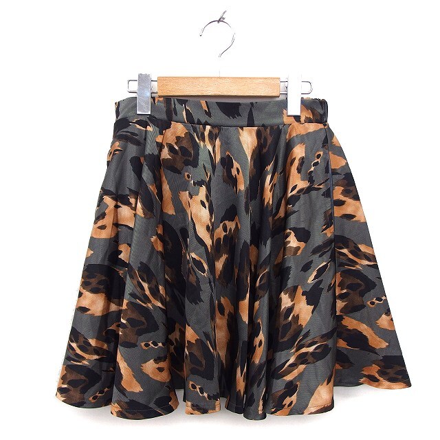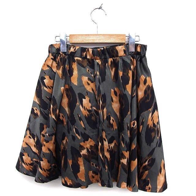ローヴス LOAVES スカート フレア ミニ プリント ゆったり ギャザー M グレー /NT32 レディース