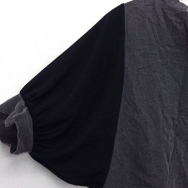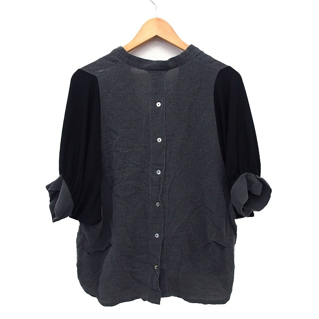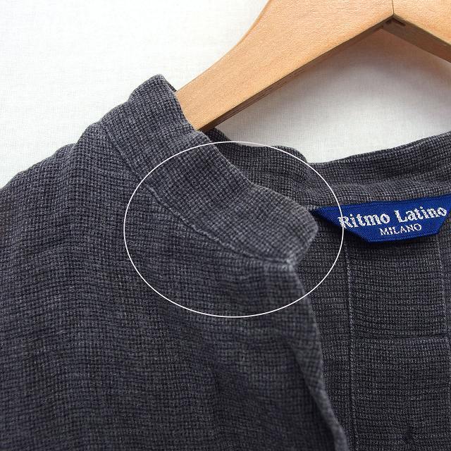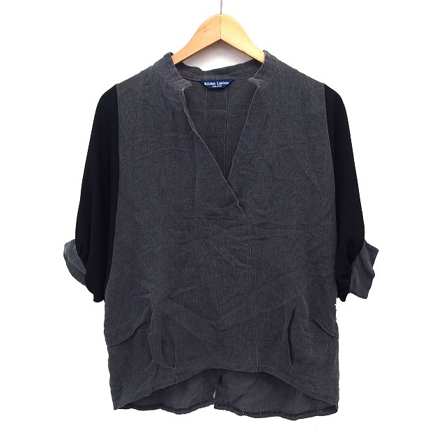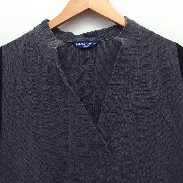 リトモラティーノ Ritmo Latino カットソー シャツ 切替シフォン 飾りボタン ロングテール 七分袖 オープンフロント 1 灰 /HT15 レディース