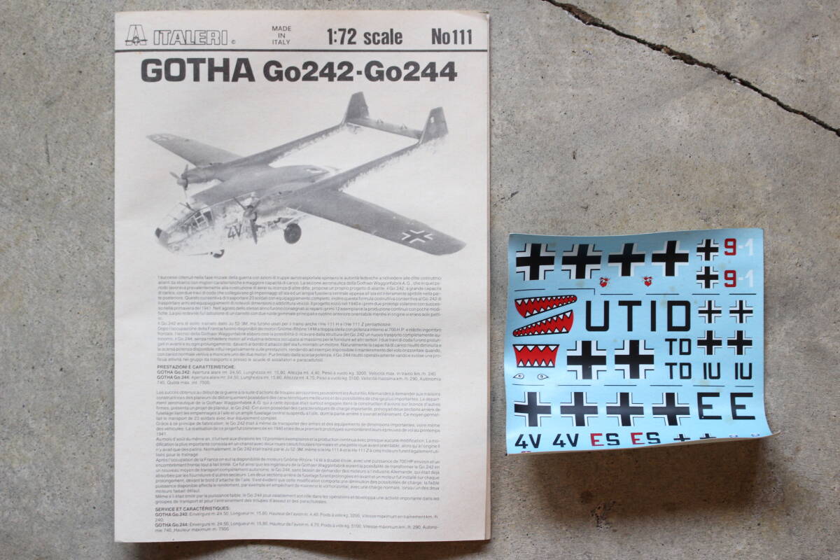 A35 当時物 ITALERI イタレリ 未組立 1/72 スケール No.111 GOTHA GO 242/244 ゴータ 載貨滑翔機及運輸機 輸送グライダー プラモデル