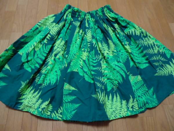 ハワイにて、古着として、購入しました。コットン・ポリエステル混合素材。カラーは、濃緑色地に、グリーン・黄緑色葉っぱ柄です。クリーニング済み。ハワイ製。腰ゴム3本入りです。サイズは、平置き実寸を重視して下さい。なお、少々誤差は、ご了承下さい。ウエスト約29~45センチ・丈約59センチです。目立ったダメージありませんが、USED物なので、古着に、ご理解のある方・24時間以内に、お手続き入力後、期限内にかんたん決済、出来る方のみ、ご入札をお願い致します。この商品は、1点物です。 ※※発送方法・送料は、レターパックプラス郵便(追跡可能・手渡し配達・補償無し)ですと、600円又は、ゆうパック送料着払い便(持ち込み割引有り・追跡可能・手渡し配達・補償有り・かんたん決済時は、送料0円ですが、送料のみ到着時支払い)です。※※ ☆★★★★★☆送料は、変わりますが、何点でも、同梱包可能です。数点落札されましたら、まとめて取引を、選択お願いします。☆★★★★★☆