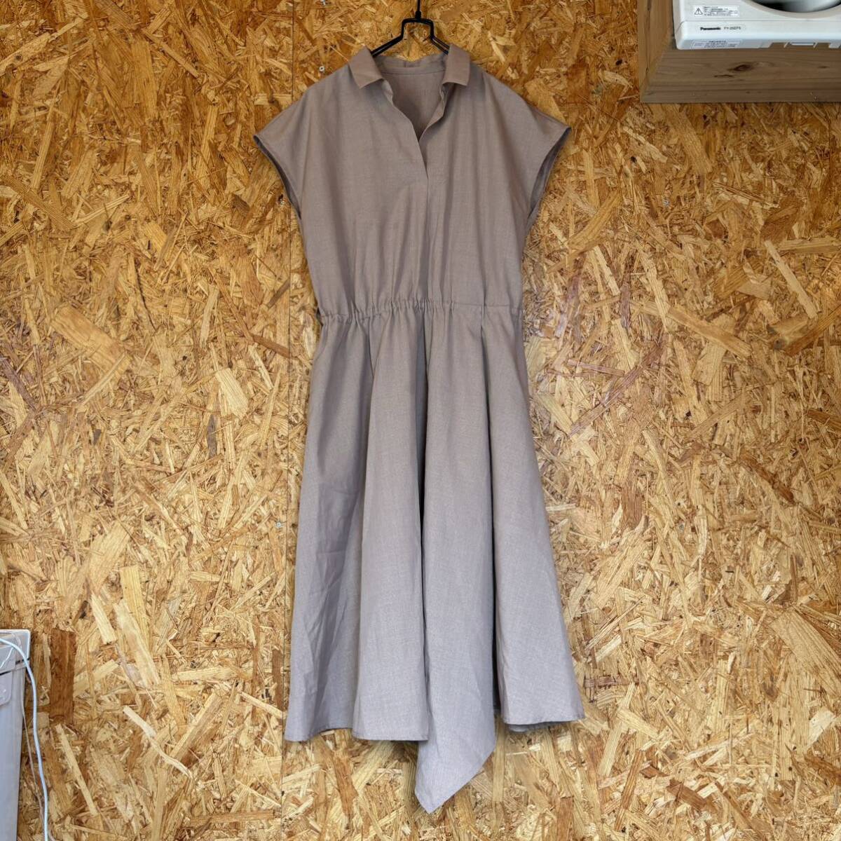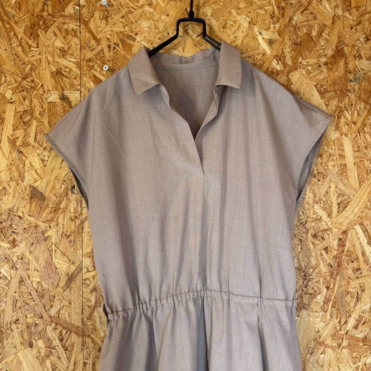 美品 ViS ワンピース 半袖ワンピース ベージュ 襟付きワンピース ひざ丈ワンピース ポケット 3093
