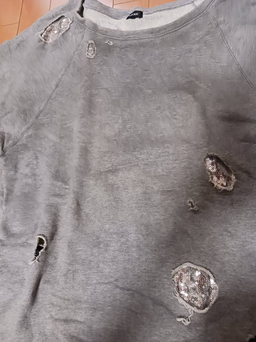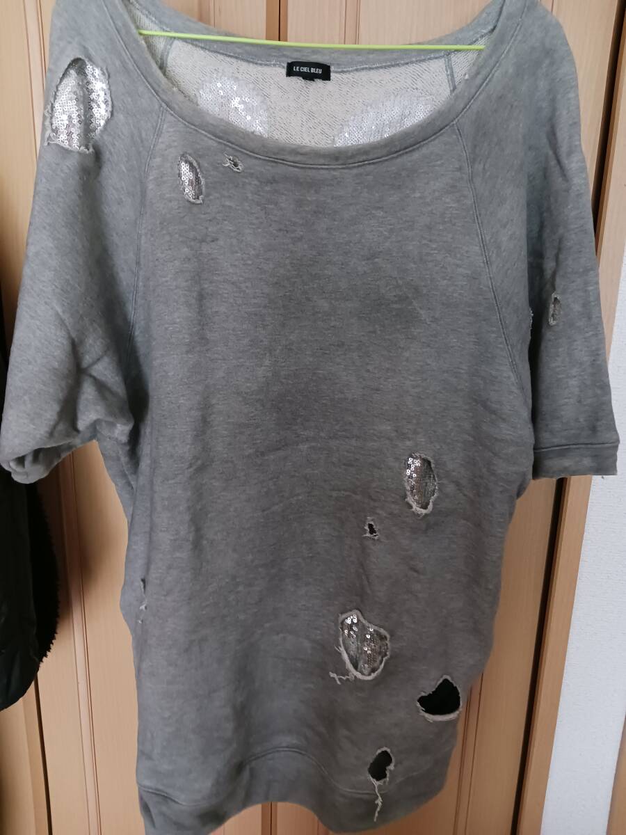 カラー:グレー コットン100 シルバーのスパンコールで飾りあり