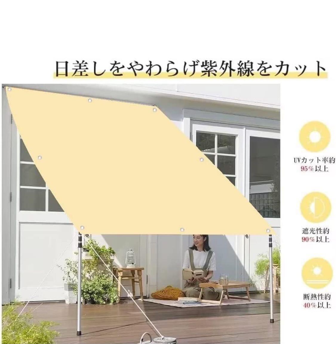 シェード 1.4x2M 撥水 バルコニーシェード オーニング サンシェード プライバシー UVカット クールシェード 目隠しシート 日除けシート 遮熱 断熱 バルコニー/ベランダ/ガーデン/庭用 高い耐久性 通気性 取付簡単 ハトメ 固定ロープ 付属