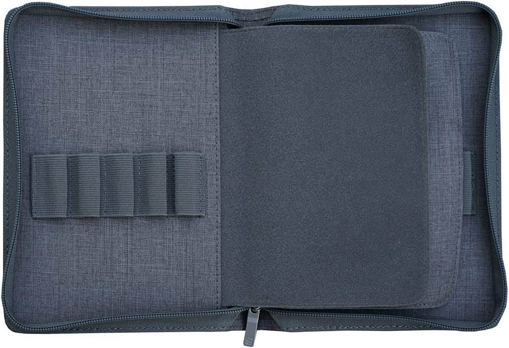 左右に5本ずつの収納スペースがあり、太めのゴムバンドでペンを保持します。