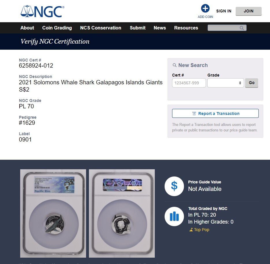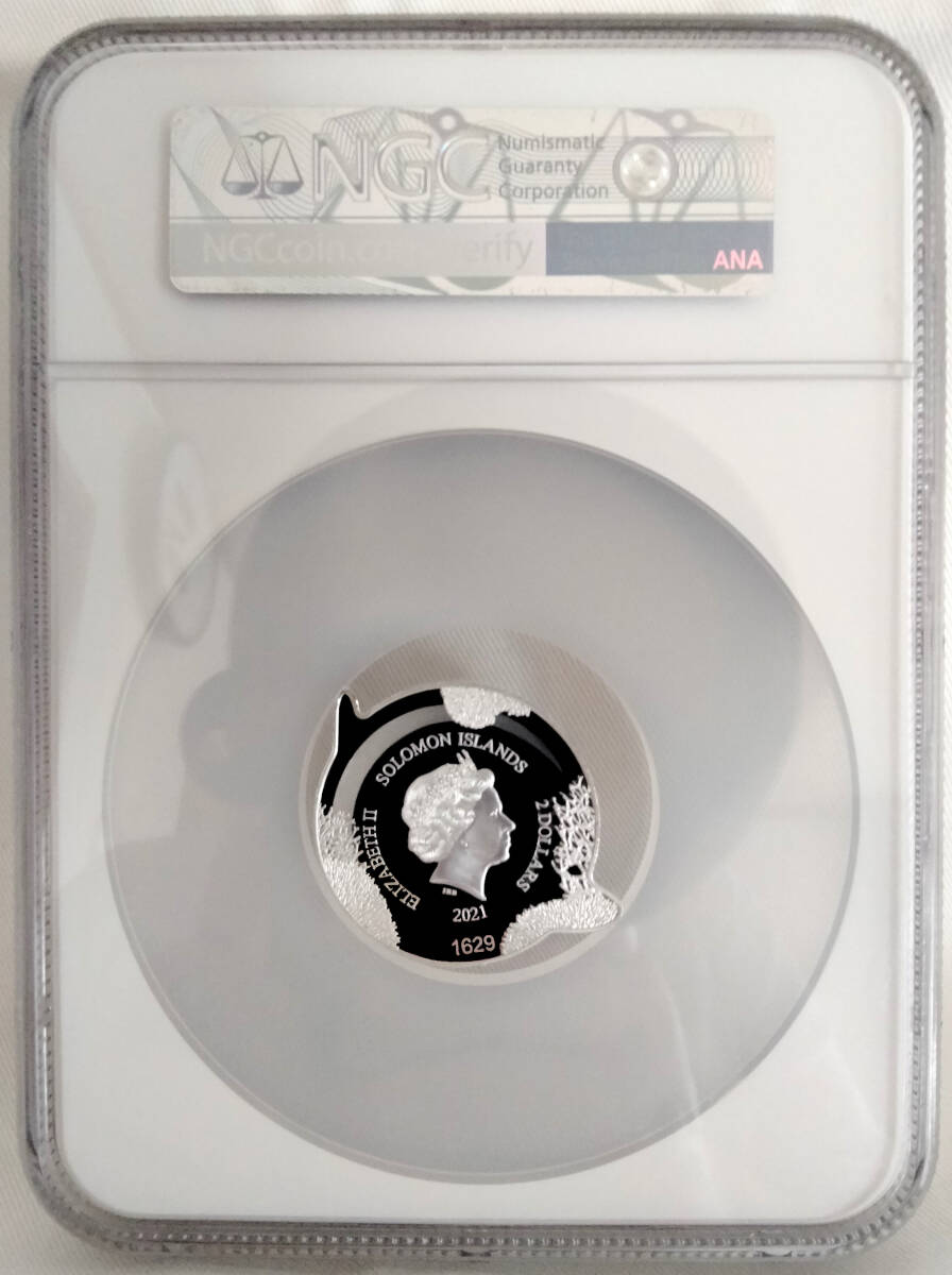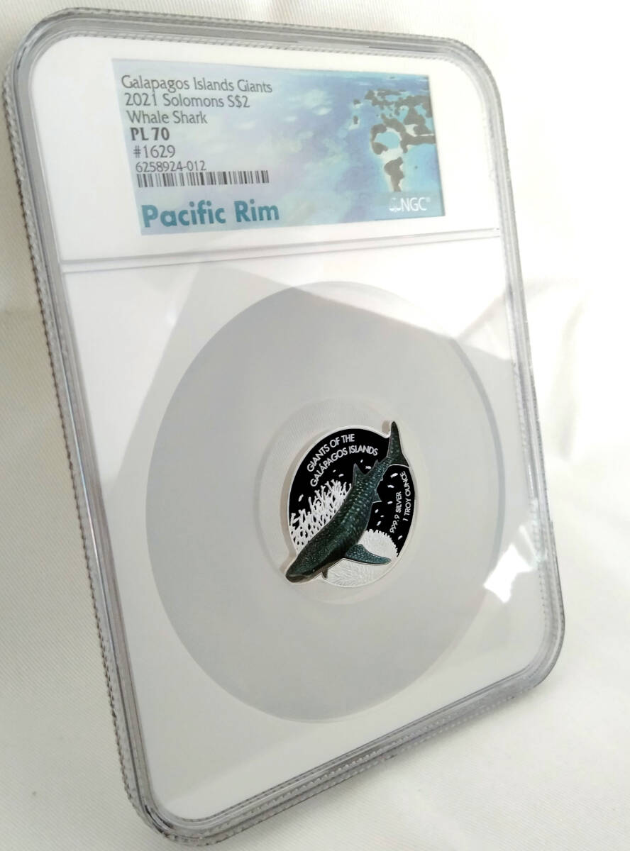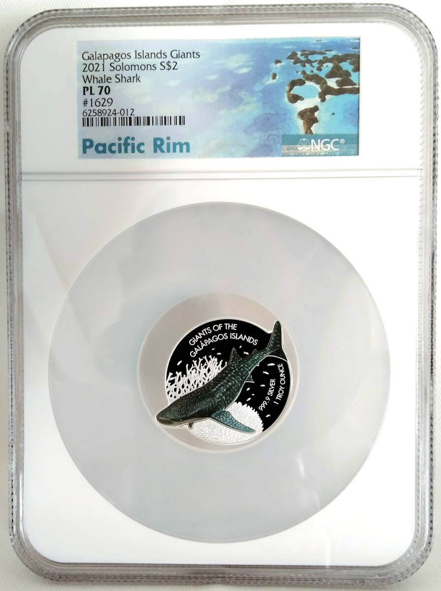【 巨大ジンベエザメ 】★最高鑑定★ ガラパゴス諸島シリーズ 2021 ソロモン諸島 銀貨 2ドル NGC PL 70 シリアルナンバー・ケース付き