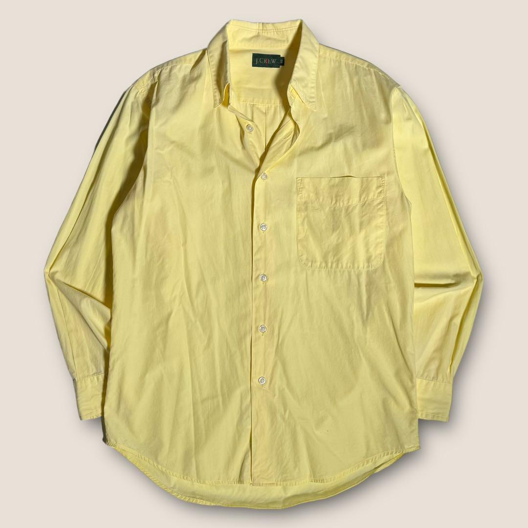 $ ペールカラー 90s 巨人タグ OLD J.CREW ジェイクルー ポプリン 長袖シャツ レディースL相当 メンズXS 黄色