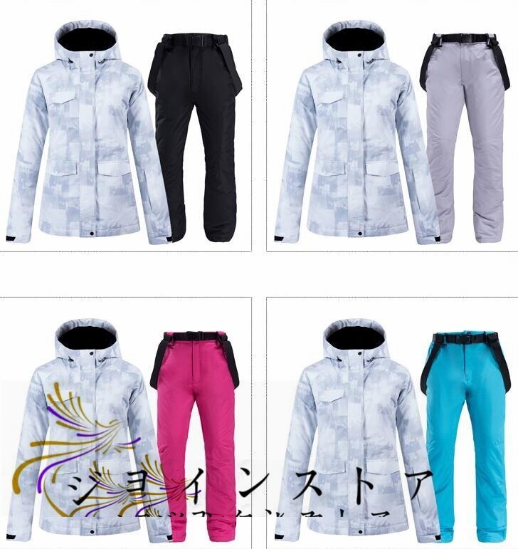 8色 スキーウェア レディース スノーボードウェア 上下セットスキー ジャケット パンツ 登山 フード付き 撥水防風 保温S~XXL
