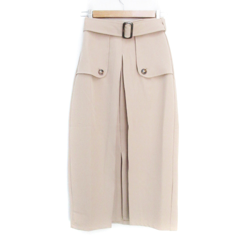 ナイスクラップ NICE CLAUP タイトスカート ロング丈 マキシ丈 ベルト付き スリット F ベージュ /FF46 ■MO レディース