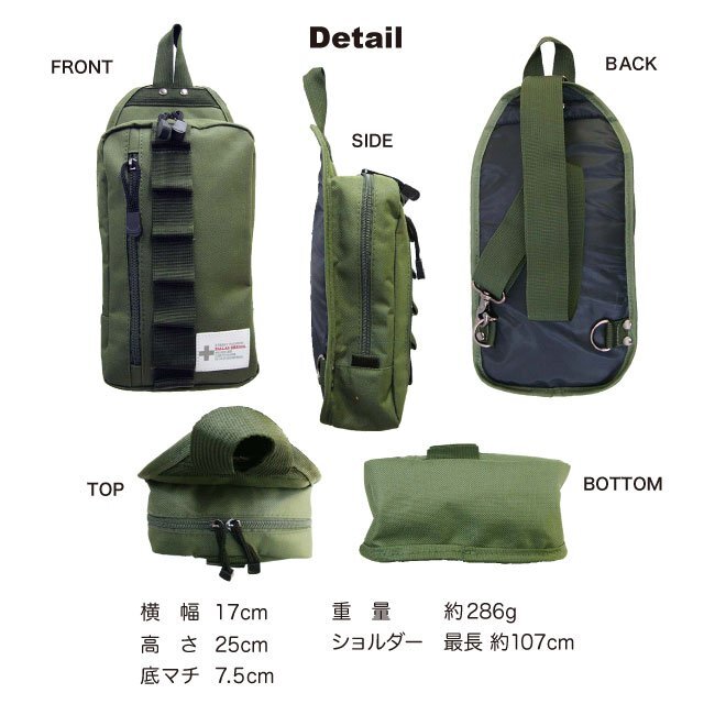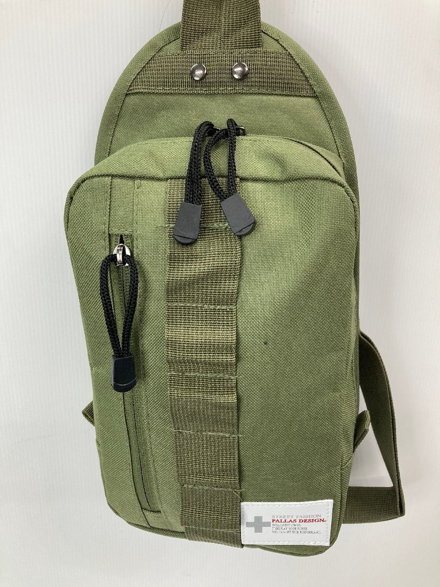ワンショルダーバッグ ボディバッグ トラベルバッグ 肩掛け 斜め掛け ポリエステルキャンバス グリーン系カーキ PALLAS DESING★未使用格安!