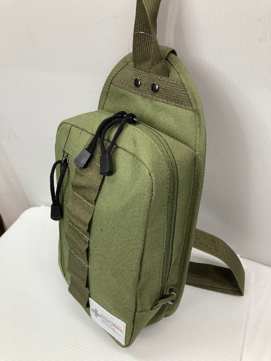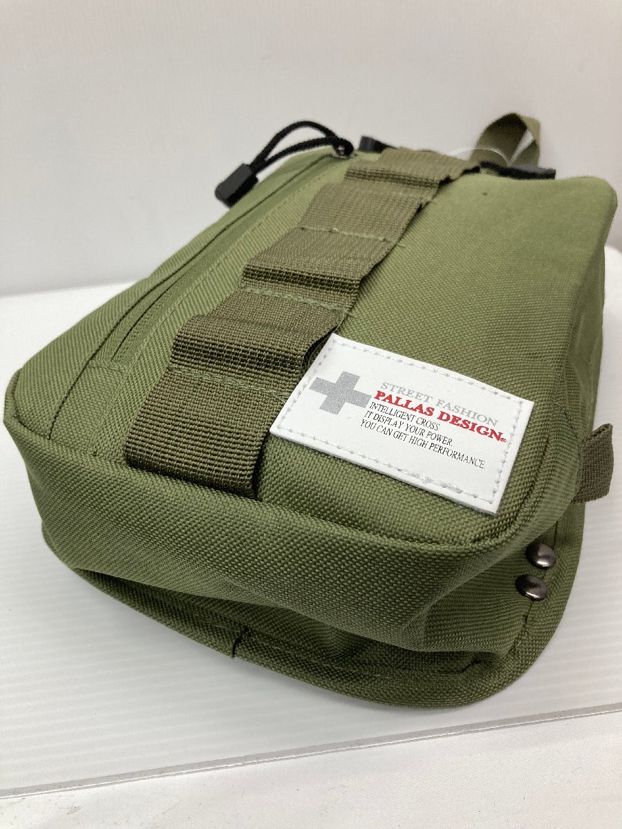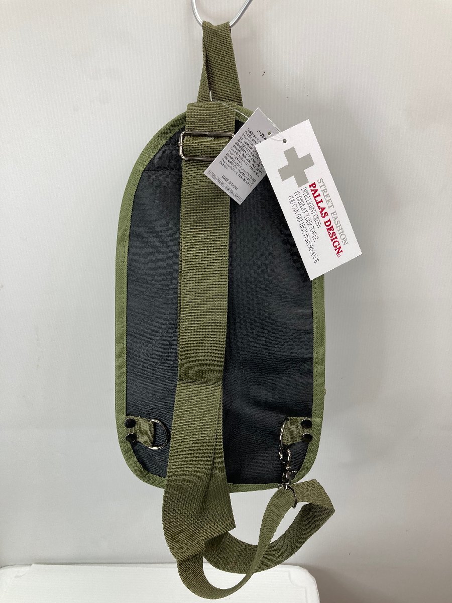 ワンショルダーバッグ ボディバッグ トラベルバッグ 肩掛け 斜め掛け ポリキャンバス 緑系カーキ PALLAS DESING★未使用格安!