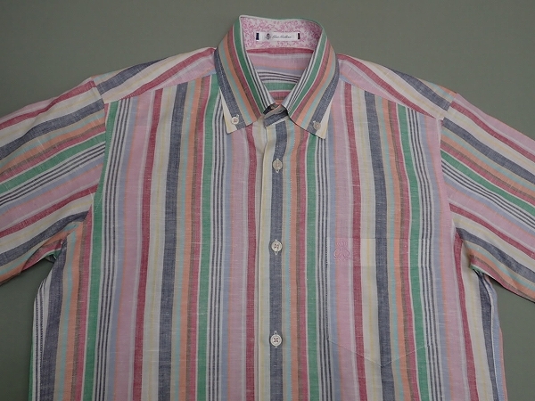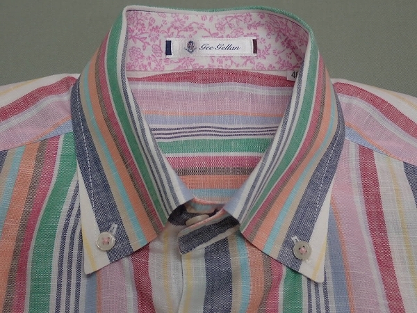 gee gellan ジーゲランのシャツです。マルチストライプ柄に胸にロゴ刺繍デザインです。素敵にお使い頂けると思います。気になる方は是非ご検討下さい。 | |