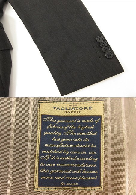 未使用 【TAGLIATORE NAPOLI 1939 タリアトーレ】 SUPER100's 3B スーツ (メンズ) 48 グレー系 ストライプ織 伊製 TA800/18 ■27SLJ0508