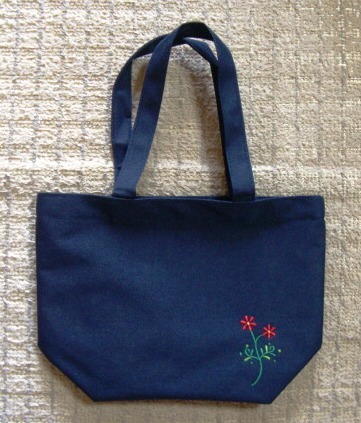 花のししゅう付き ☆トートバック★ 紺 ポケット付き 未使用品