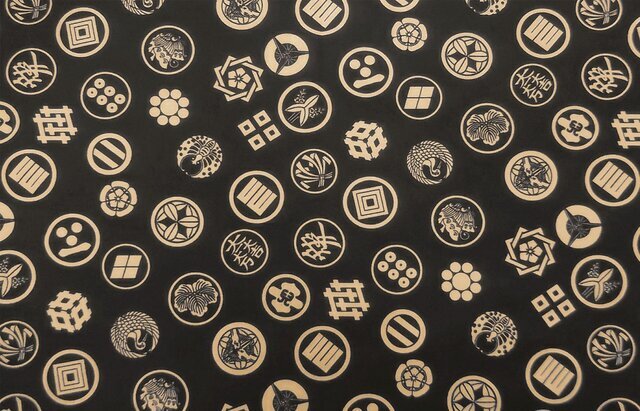 ・和柄は黒地に戦国武将の家紋が入ったコットンプリント