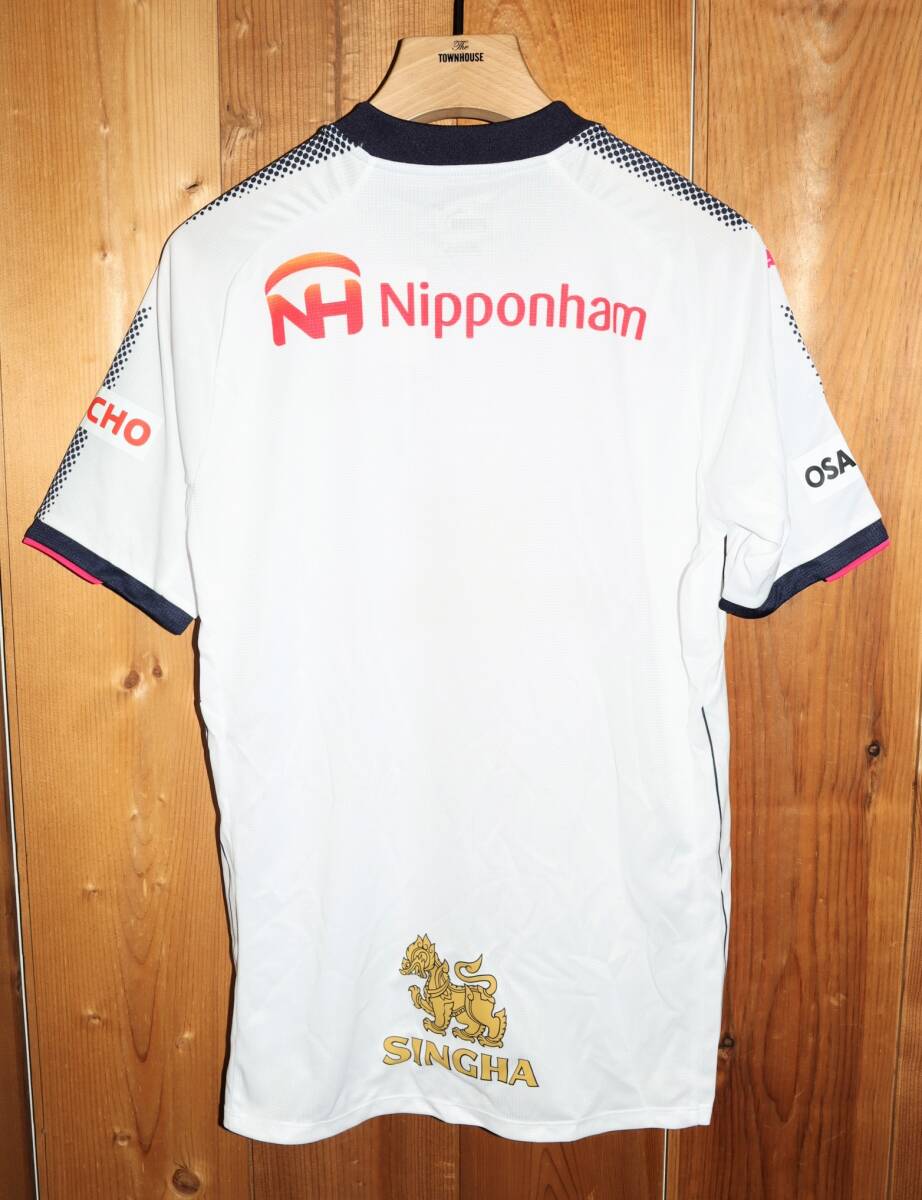 ピンストライプを特徴としたアウェイモデル。両袖のドット調ホームストライプが斬新さを表現。