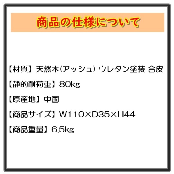 ![]() Ecomo エコモ ベンチ ブラウン ◇◆商品の仕様について◆◇ 【材質】天然木(アッシュ) ウレタン塗装 合皮 【静的耐荷重】80kg 【原産地】中国 【商品サイズ】幅110×奥行き35×高さ44(cm) 【商品重量】6.5kg ◇◆発送について◆◇