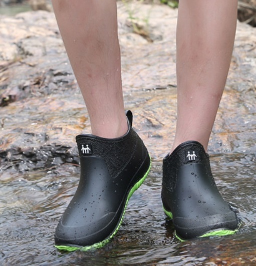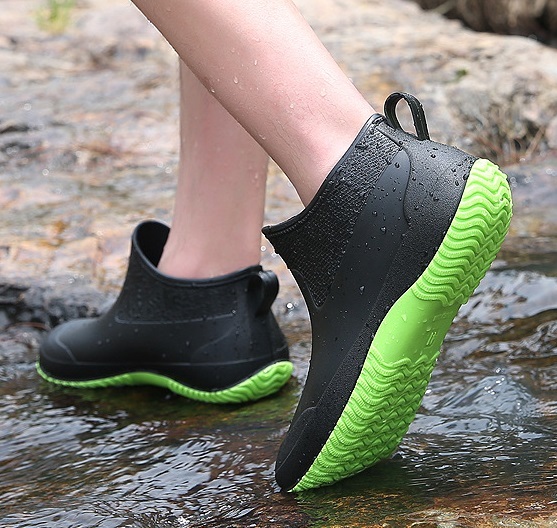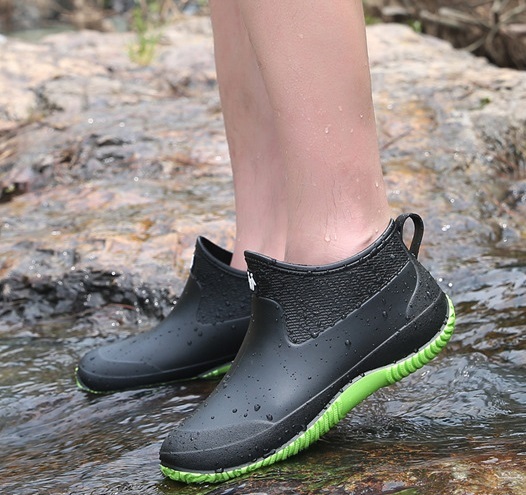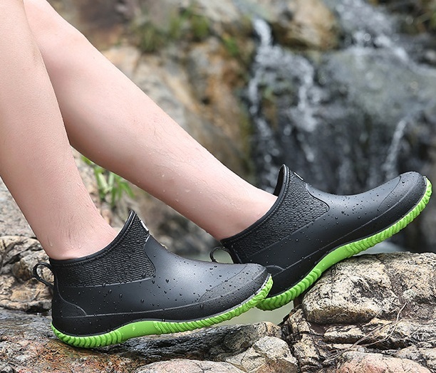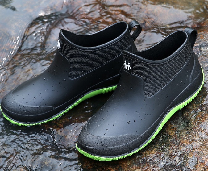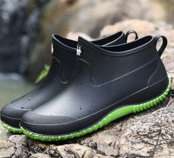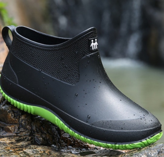 新品 レインシューズ ショット丈 メンズ 短靴 レインブーツ 作業靴 完全防水 滑りにくい アウトドア 黒緑/25.5cm
