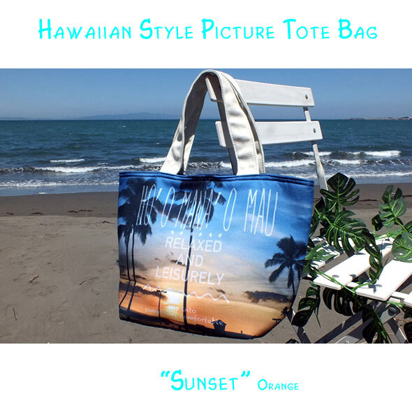 【SALE!】ピクチャートートバッグ「サンセット」 (オレンジ ) ランチトート ハワイアン雑貨 アメリカ雑貨 アメリカン雑貨