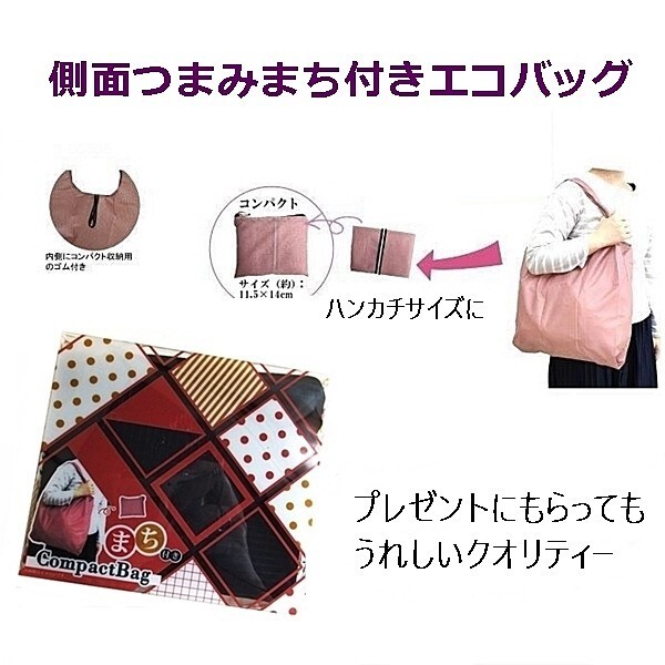 エコバッグ 側面つまみまち付き 折りたたみ グレー トートバッグ 大容量 大きめ マザーズバッグ サブバッグ コンパクト かわいい