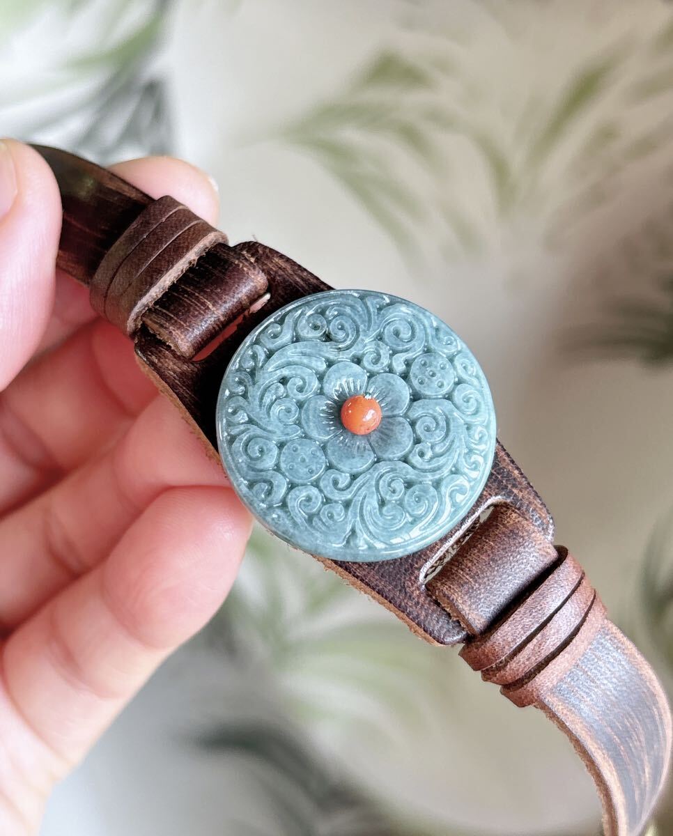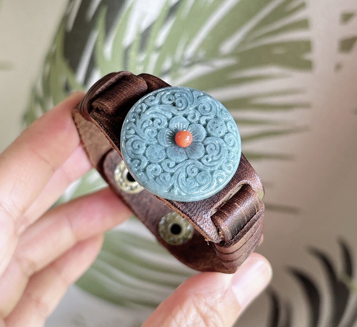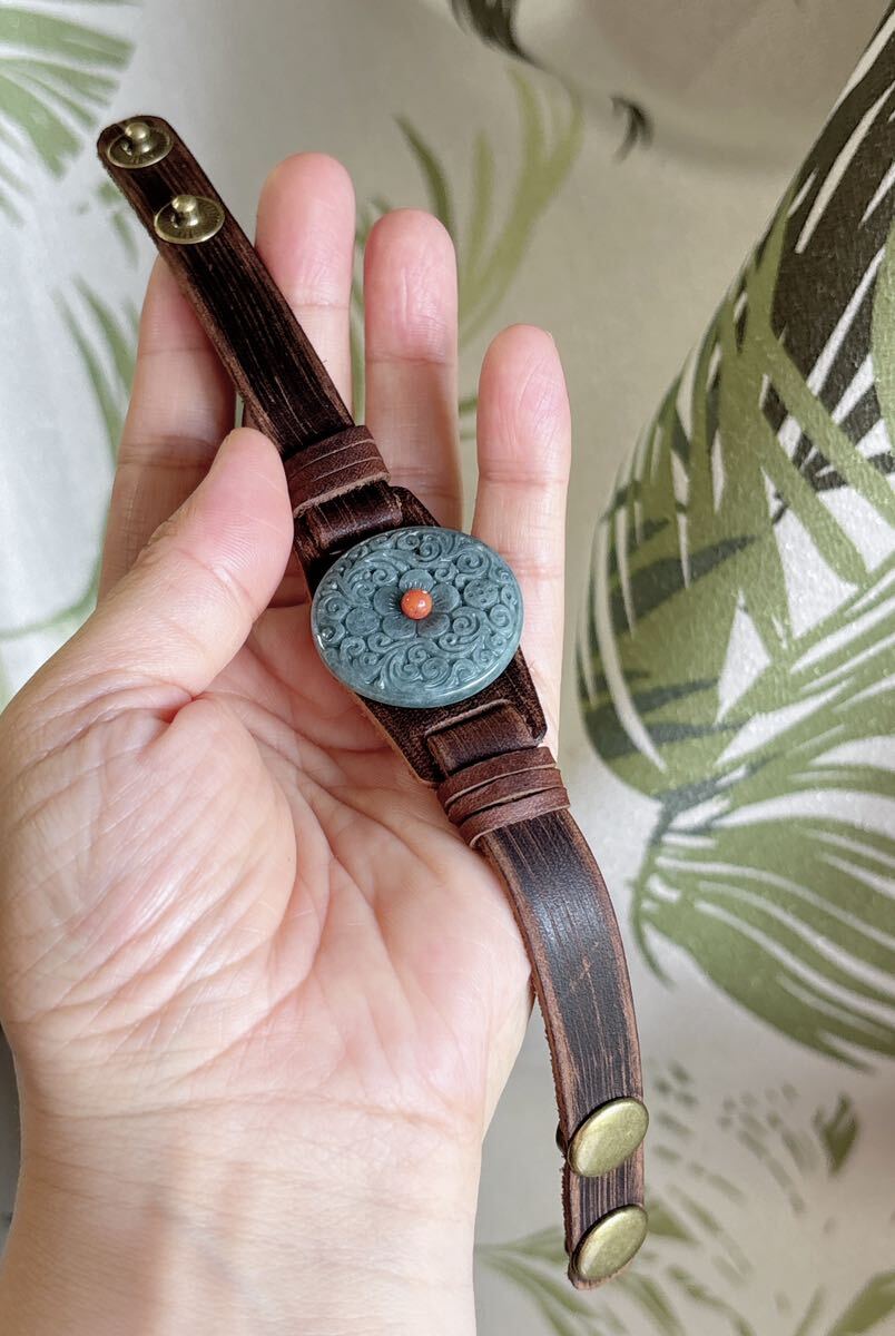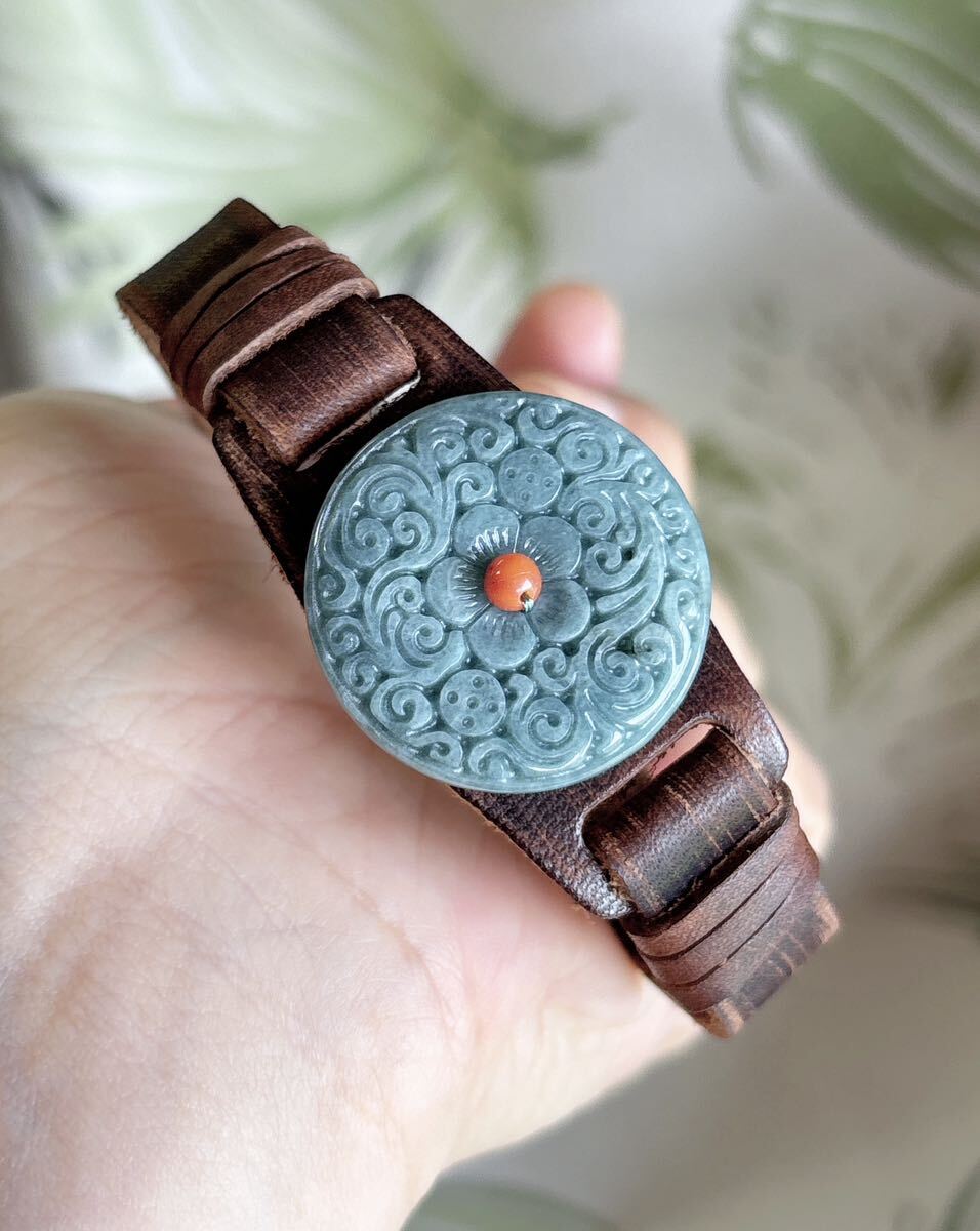 天然逸品ミャンマー翡翠藍水ピンアンコウのサイズ約:直径28mm*厚さ5mm