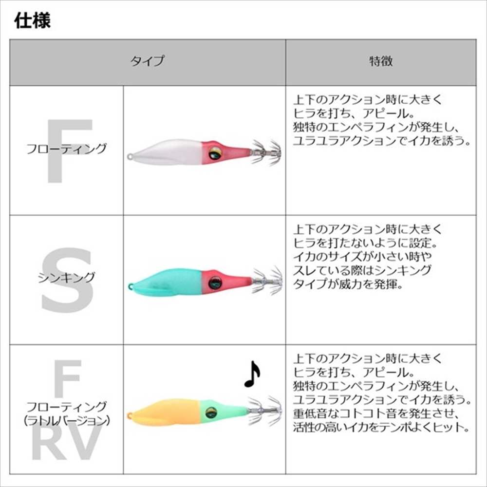 確かな釣果で絶大な信頼を置くアングラーが多いスッテ系カラーをご用意。