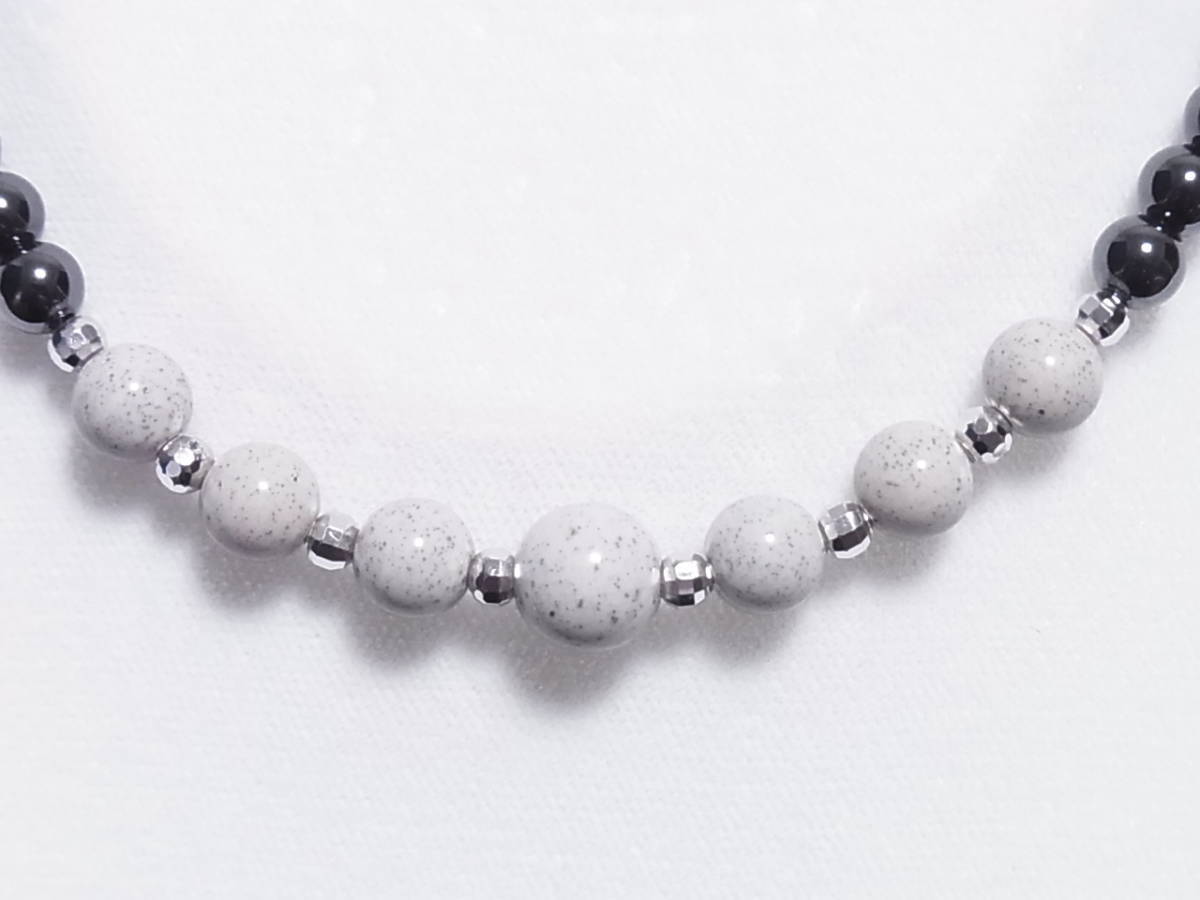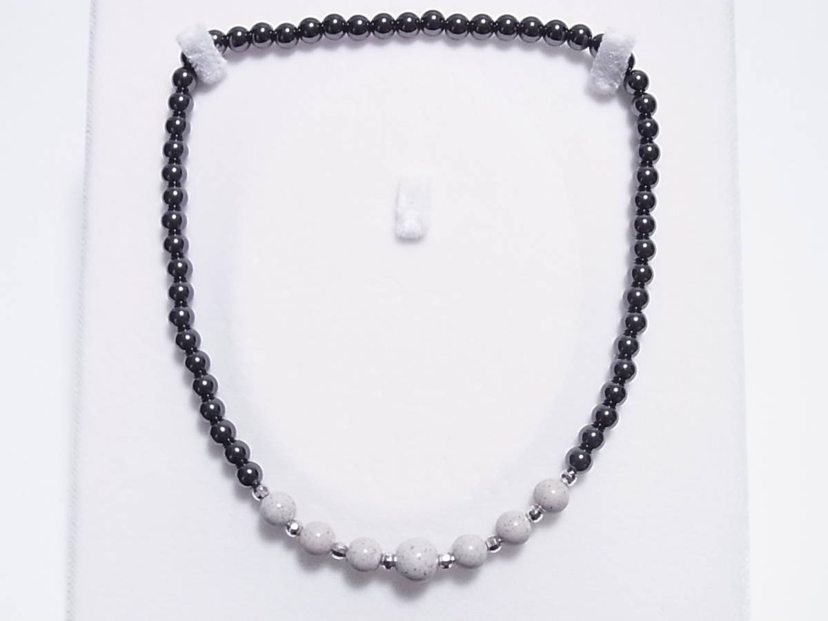 北投石、磁気ヘマタイトを使ったストレッチ・ネックレスです | |||
