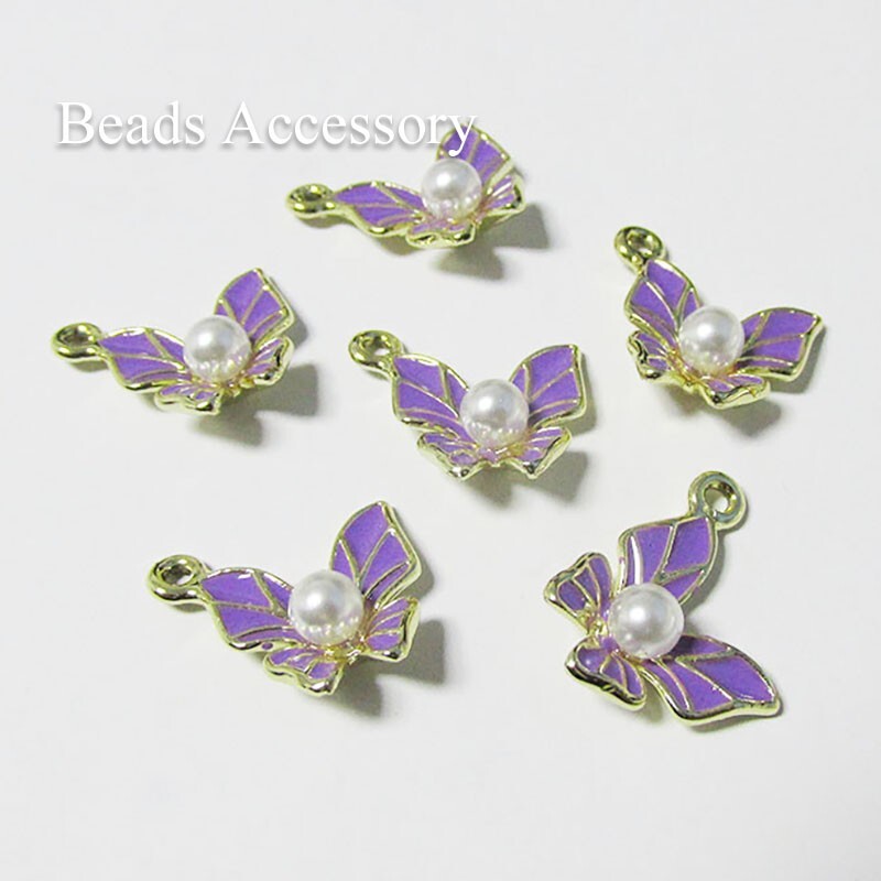 BA-0723 蝶々にパール 19mm ゴールドにパープルカラー 7個