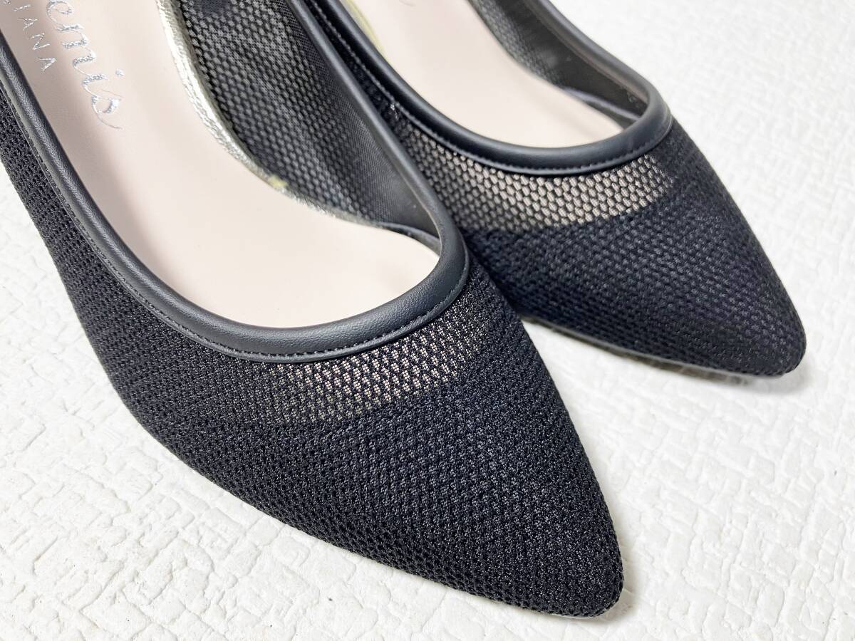 足当たりが柔らかいチュール素材なので、とがった形のポインテッドトゥが苦手な方にもトライしやすいです。