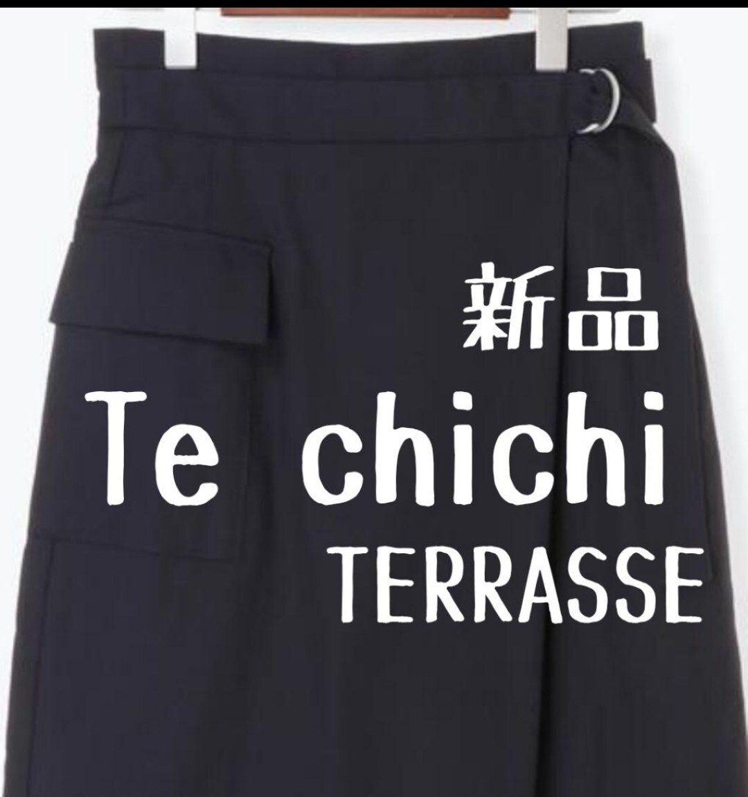 新品 Te chichi TERRASSE テチチテラス ラップ風 パッチポケット タイトスカート ネイビー