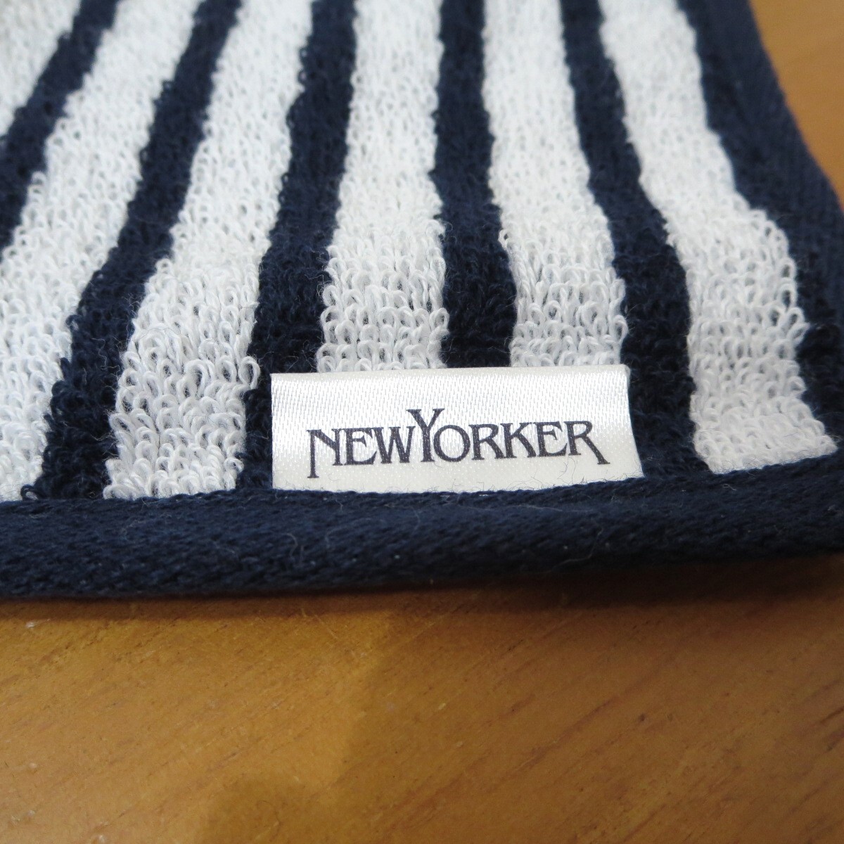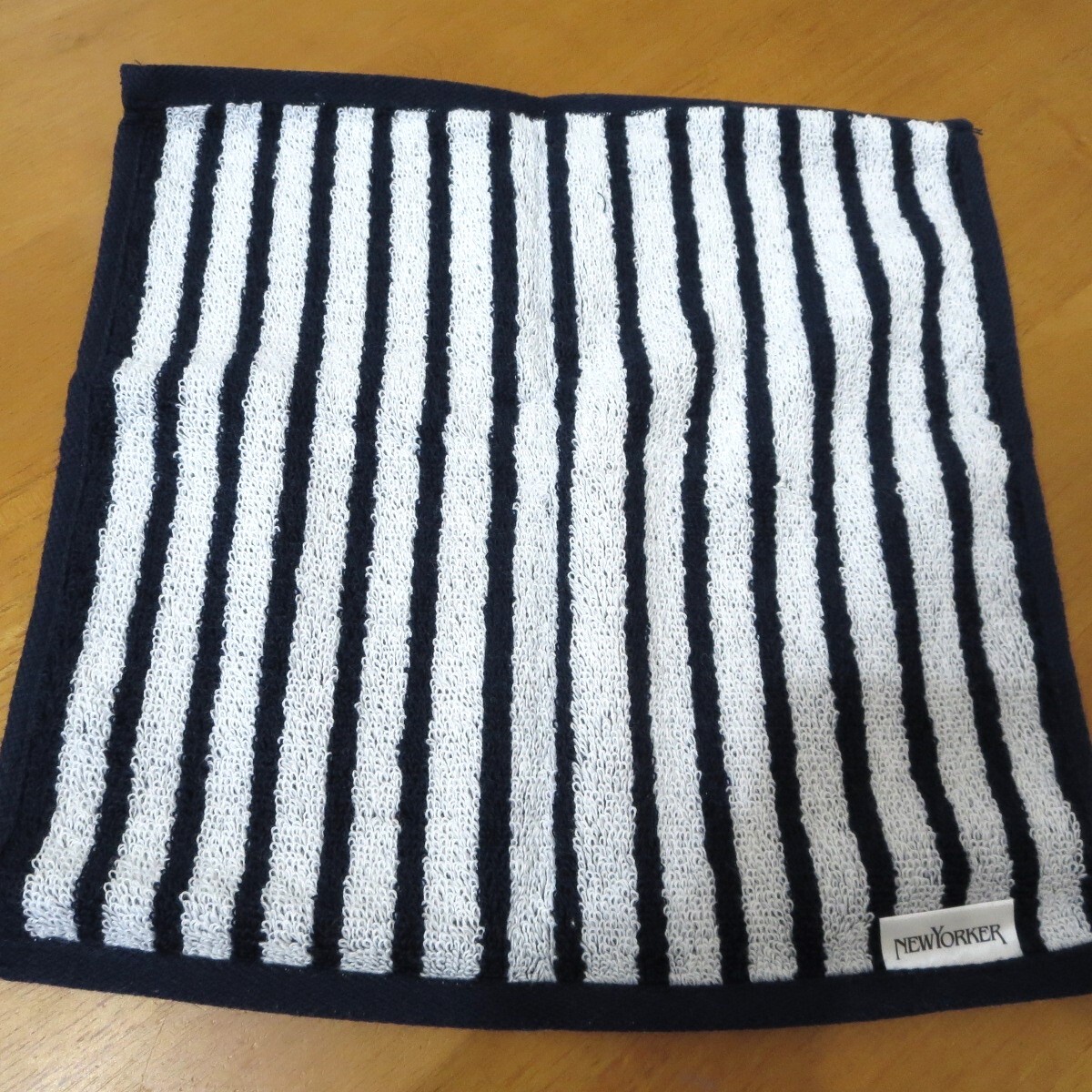 【新品・未使用】 NEWYORKER(ニューヨーカー)タオルハンカチ 1枚 綿 紺×白 ストライプ柄 ハンドタオル ハンカチ 送料140円♪