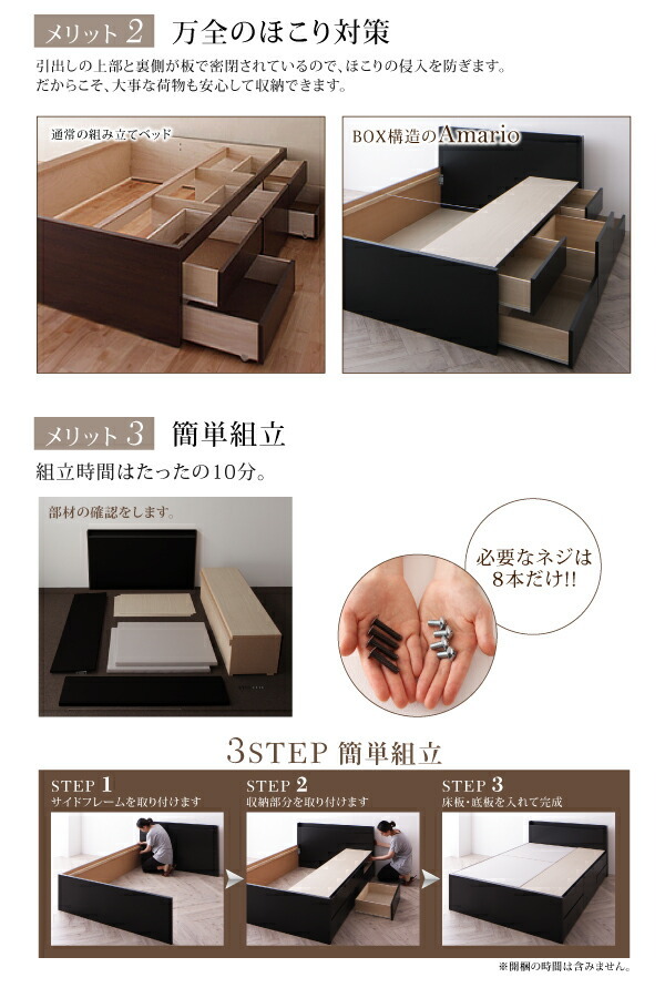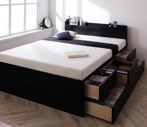 お客様組立 棚・コンセント付き_大容量チェストベッド 薄型スタンダードポケットコイルマットレス付き ダブル