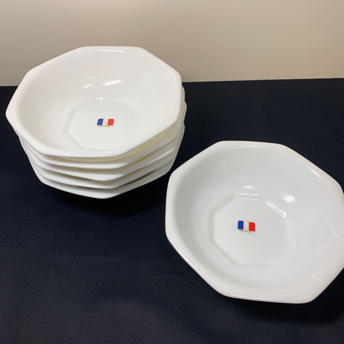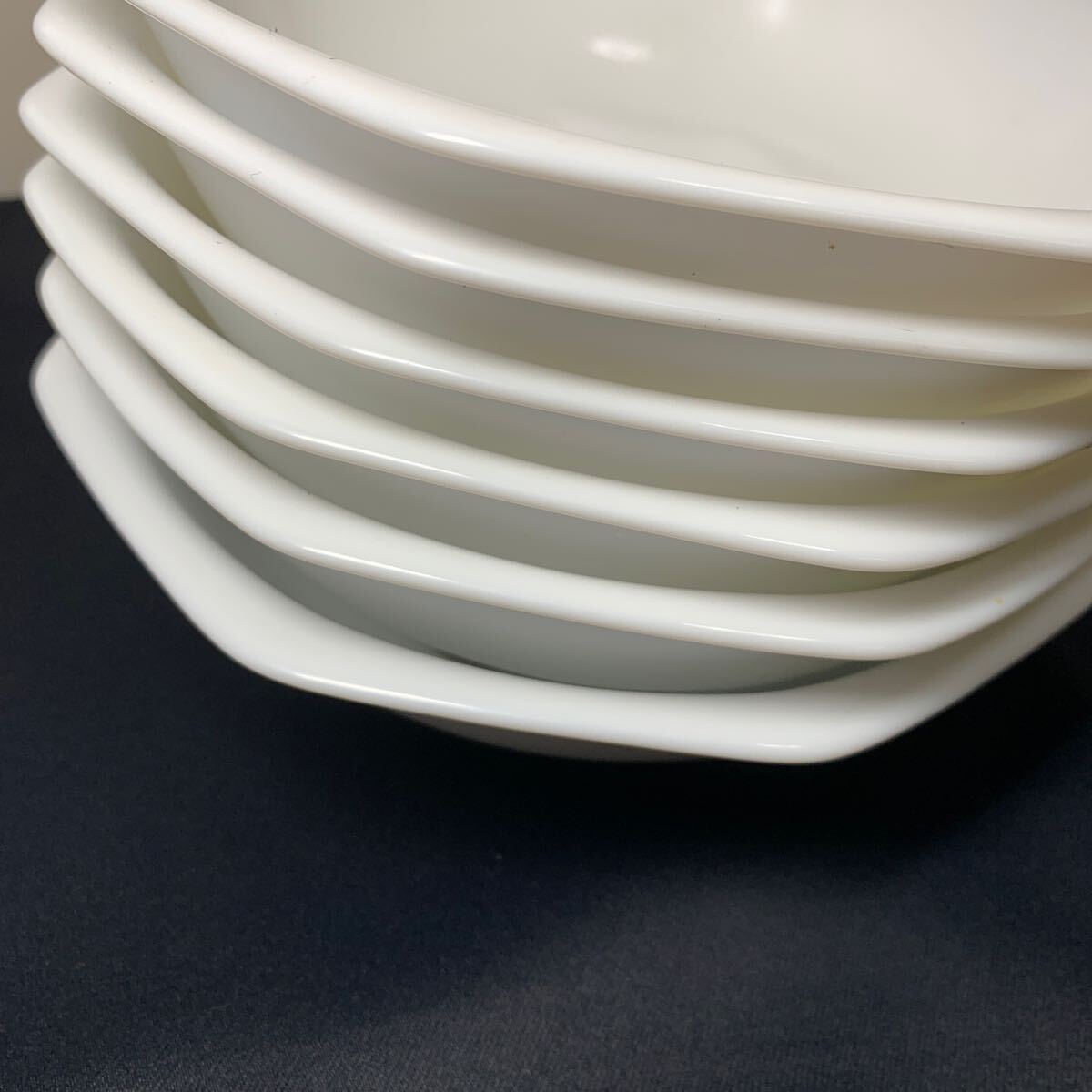 ★大阪/店舗受け取り可★未使用 長期保管 ヤマザキ春のパン祭り 山崎 1992年 白 フレンチボウル 6枚セット お皿 洋食器 耐熱 八角形 約17.2cm 高さ4.5cm ★