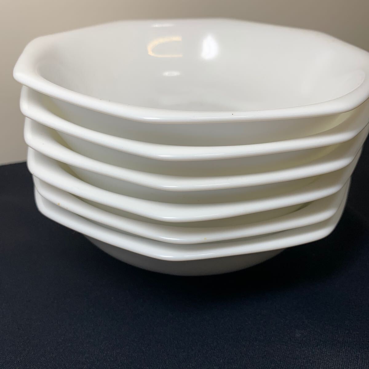 ★大阪/店舗受け取り可★未使用 ヤマザキ春のパン祭り 山崎 1992年 白いデリッシュボウル 6枚セット 耐熱 八角形 約17.2cm 高さ4.5cm ★